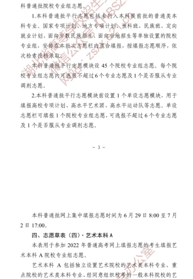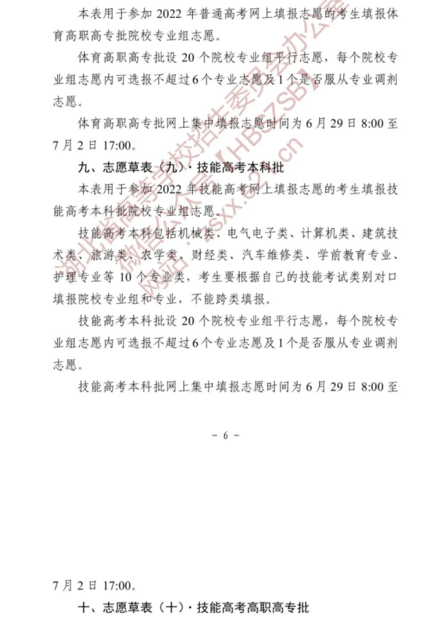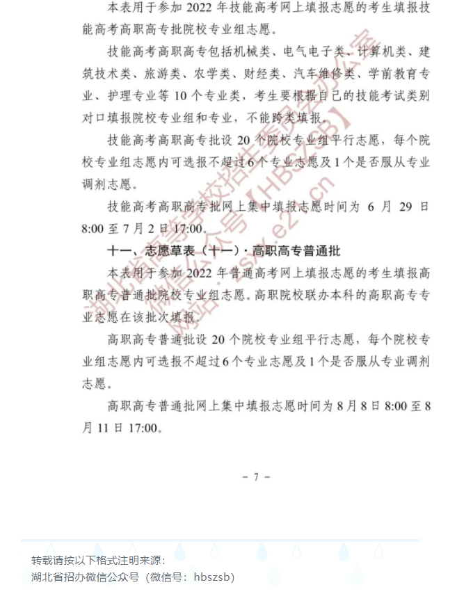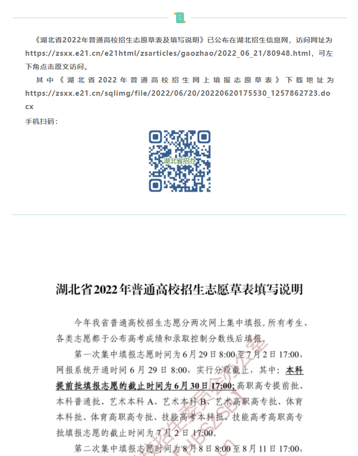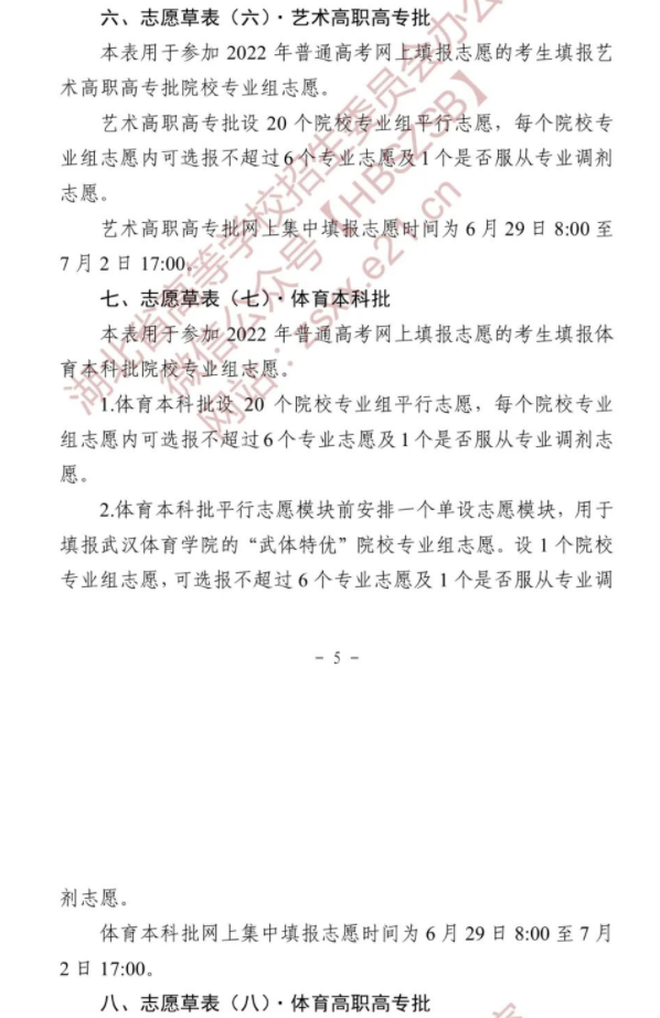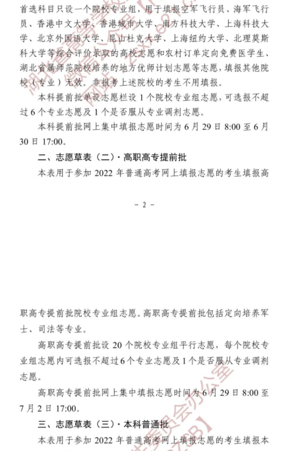 湖北省2022年普通高校招生网上填报志愿草表及填写说明