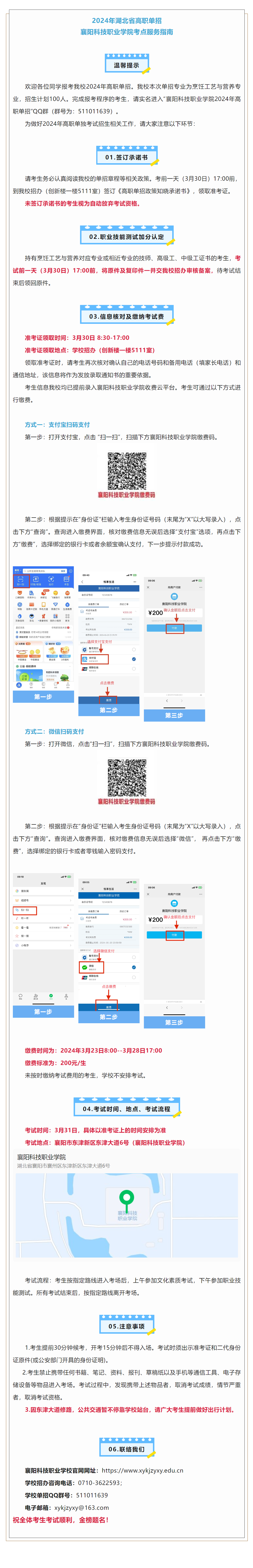2024年湖北省高职单招襄阳科技职业学院考点服务指南