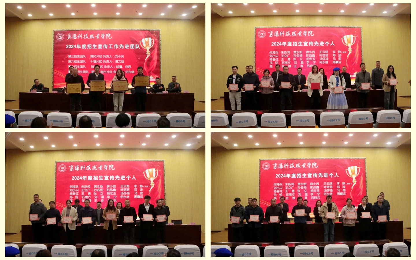 副院长冯德学宣读了《襄阳科技职业学院关于表彰2024年招生宣传工作先进团队、先进个人的决定》,4个招生团队荣获“招生宣传工作先进团队”,何海兵等28名同志荣获“招生宣传先进个人”。
