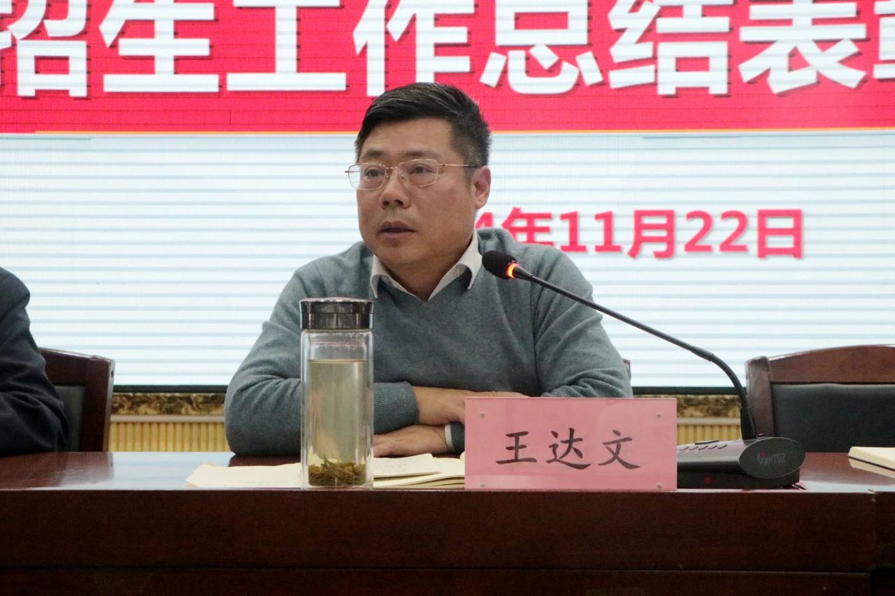 党委书记王达文强调,生源是学院的生命线,事关学院的建设与发展,事关每一位教职工的幸福感和获得感。2024年的招生已圆满结束,2025年招生工作要提前布局,科学谋划,要以“适应市场发展、保证学院重点、适合学生需要”为原则调整专业布局,及时宣传学院的成果,挖掘好、稳定好、培育好生源基地,力争招生工作再创辉煌。