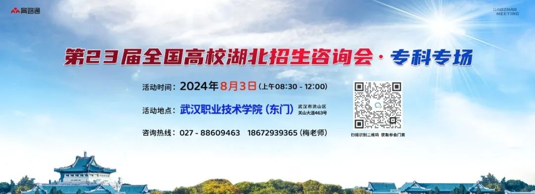 8月3日上午,2024年度最后一场高招咨询活动——第23届全国高校湖北招生“专科专场”咨询会将在武汉职业技术学院(东区)隆重举办。