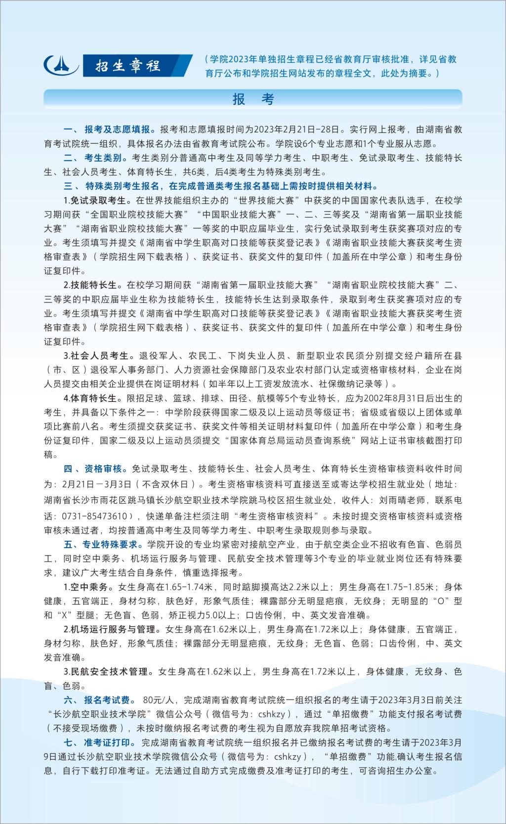 长沙航空职业技术学院2023年单招手册