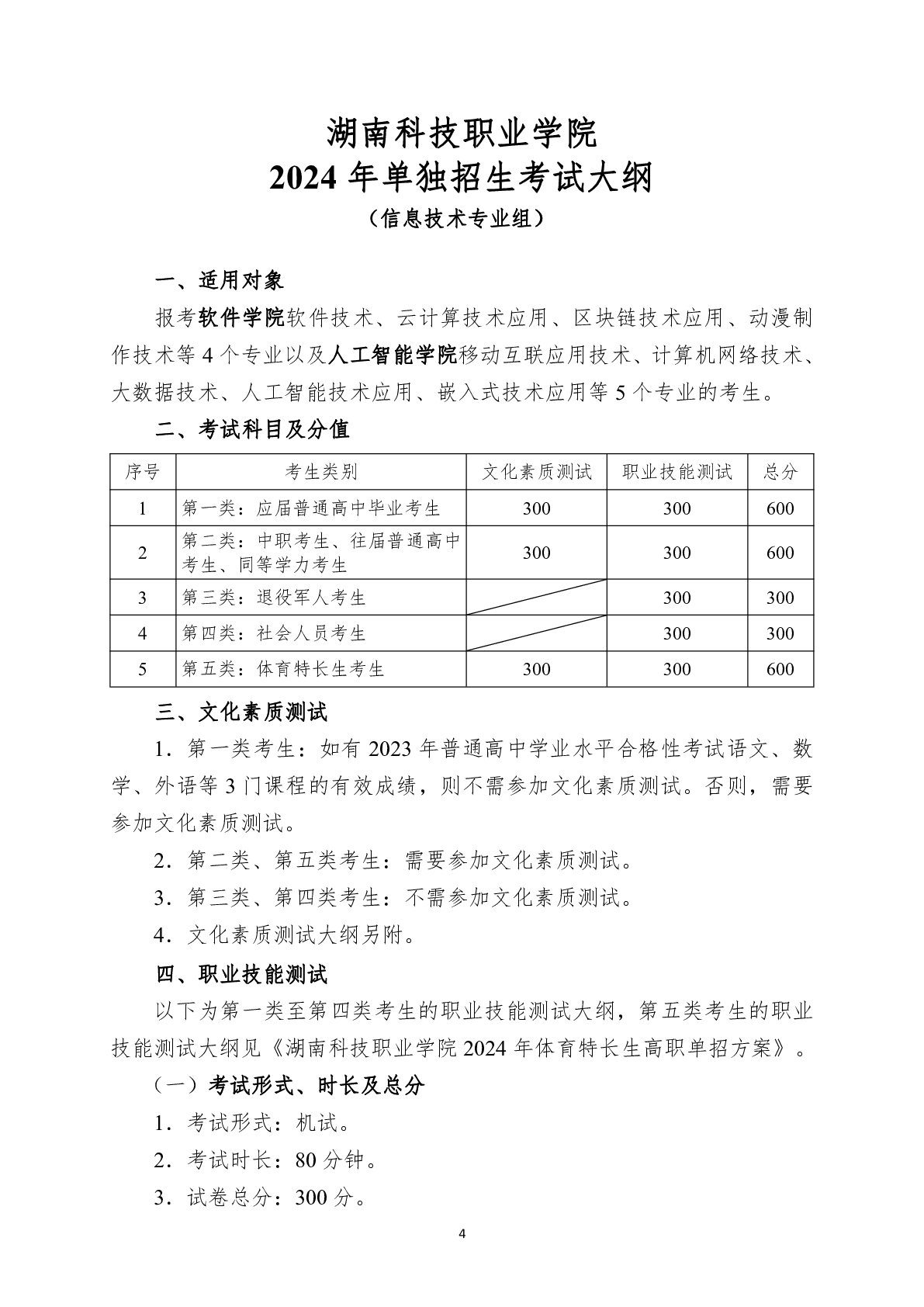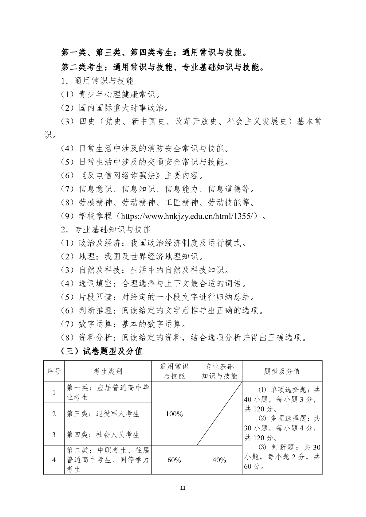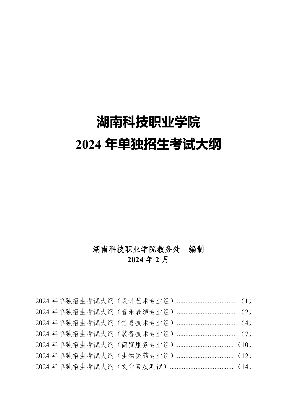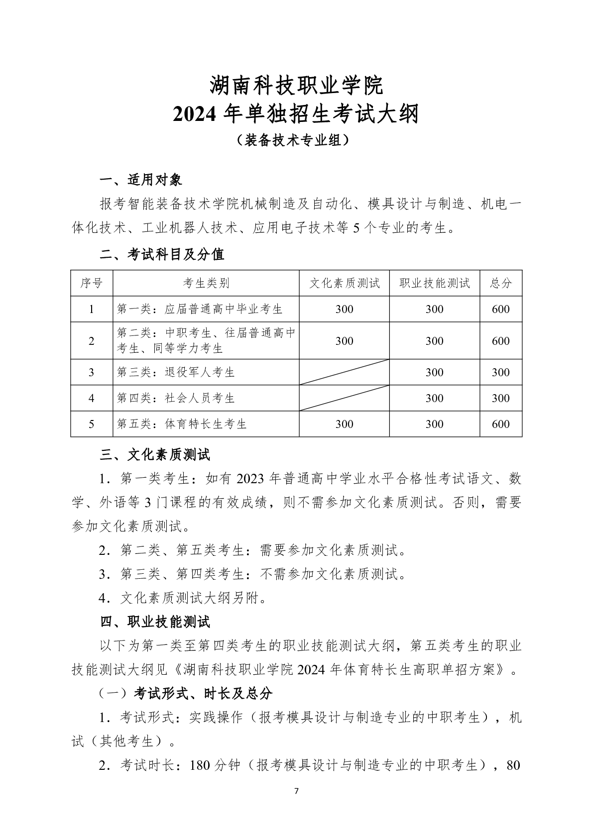 湖南科技职业学院2024年单独招生考试大纲