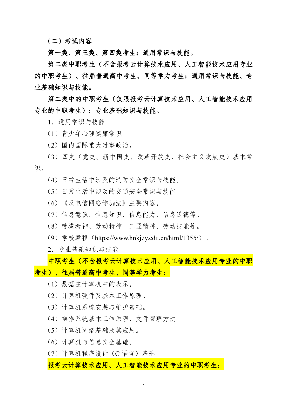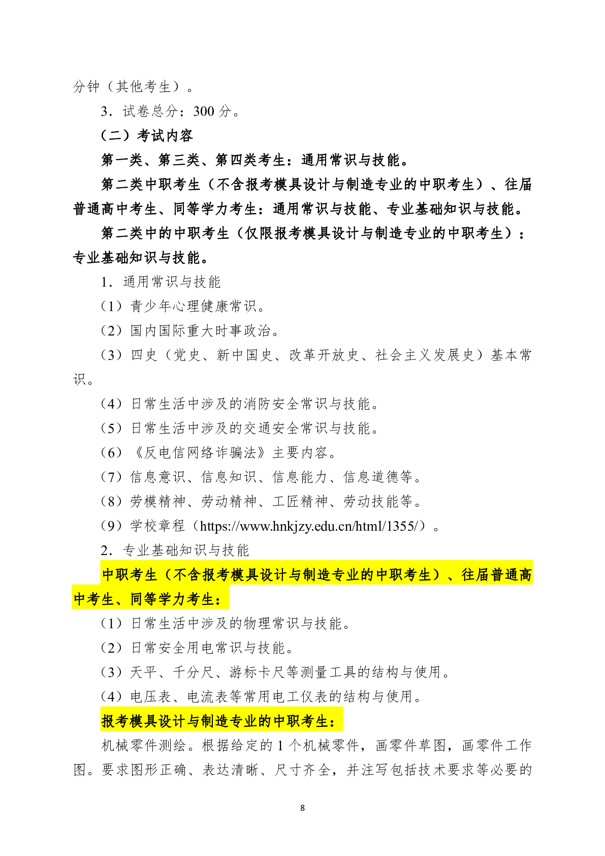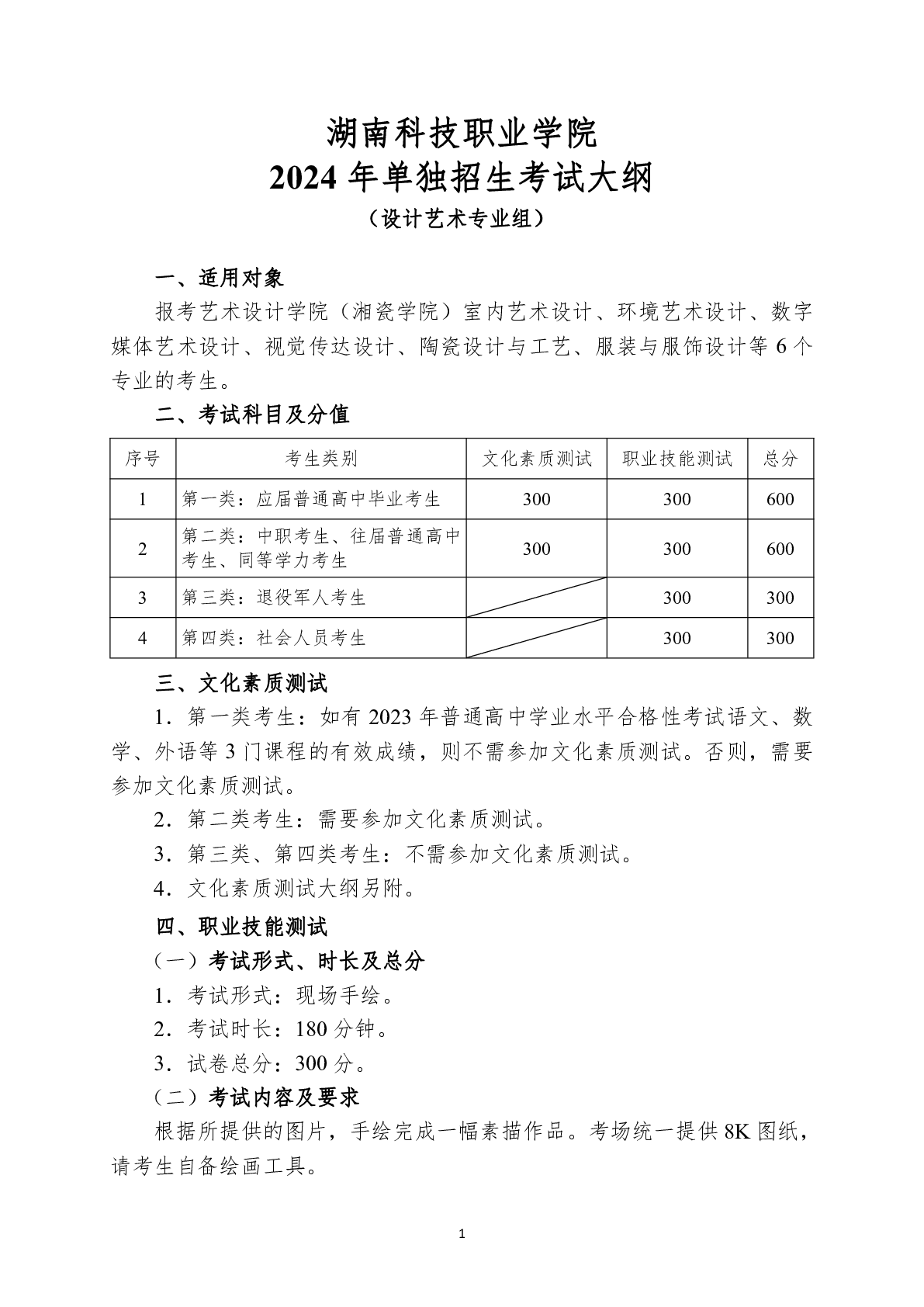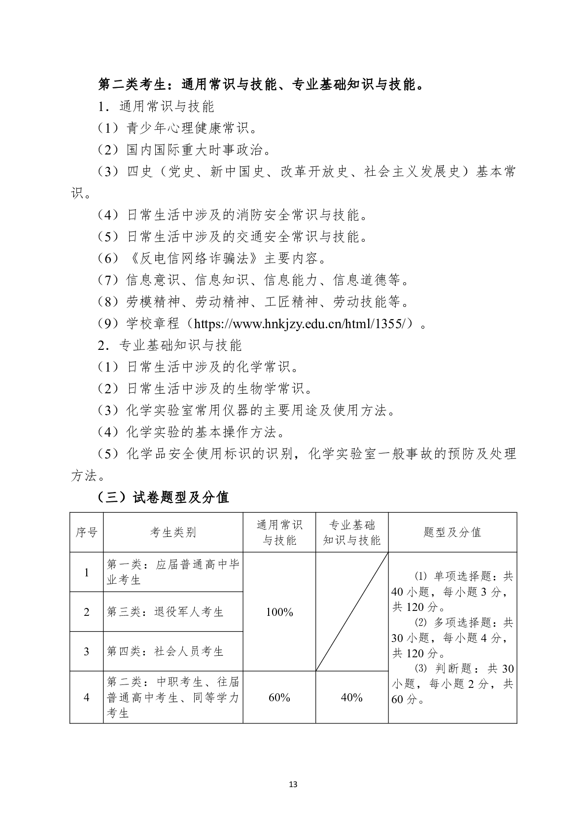 湖南科技职业学院2024年单独招生考试大纲