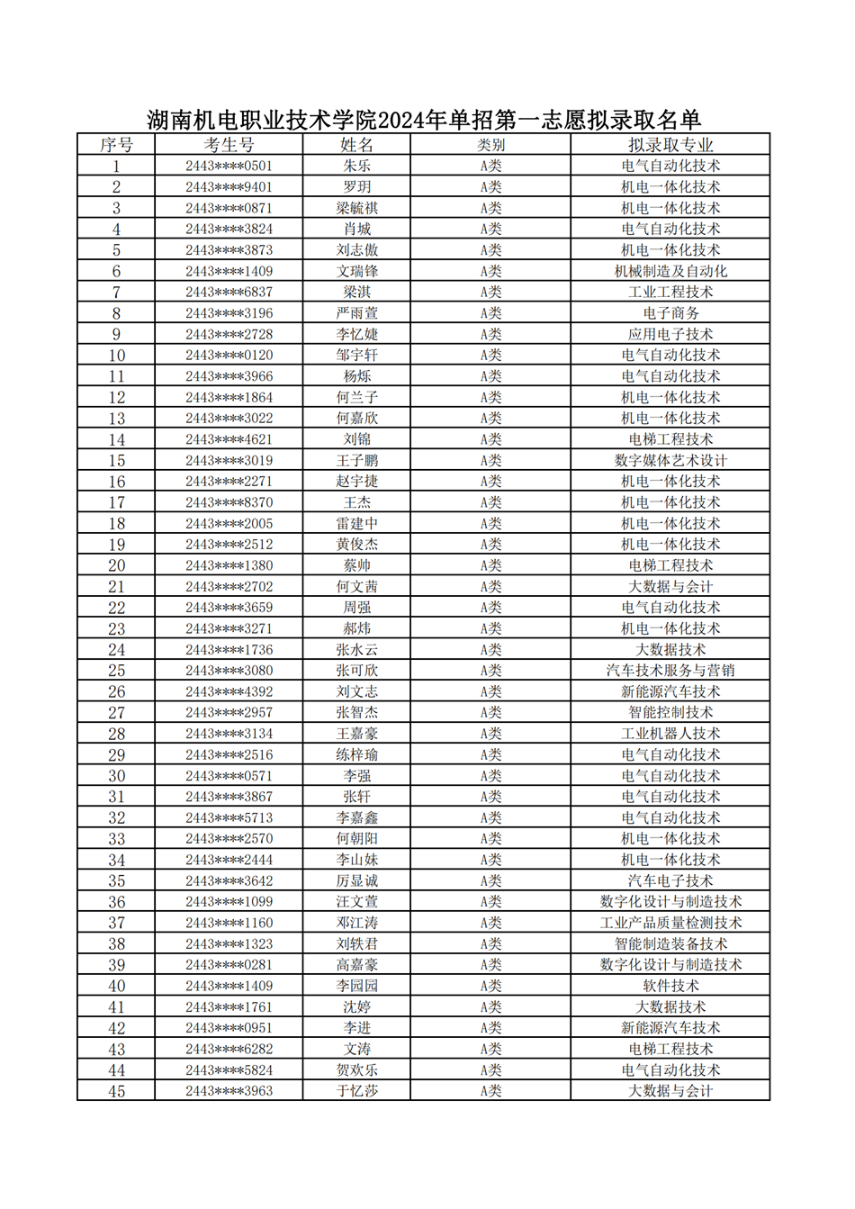 2024年第一志愿拟录取名单及录取分数线公示