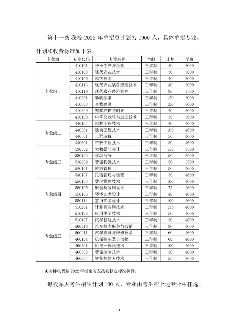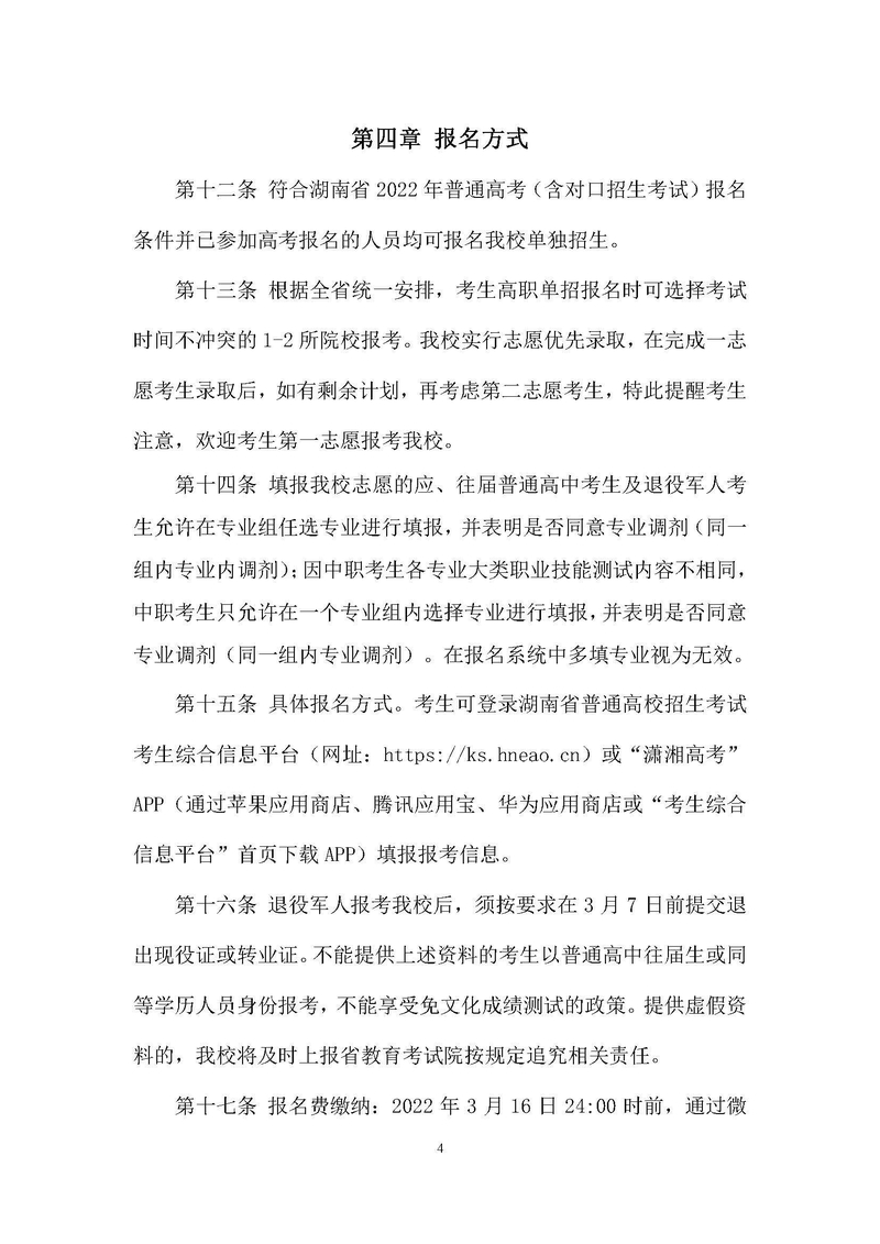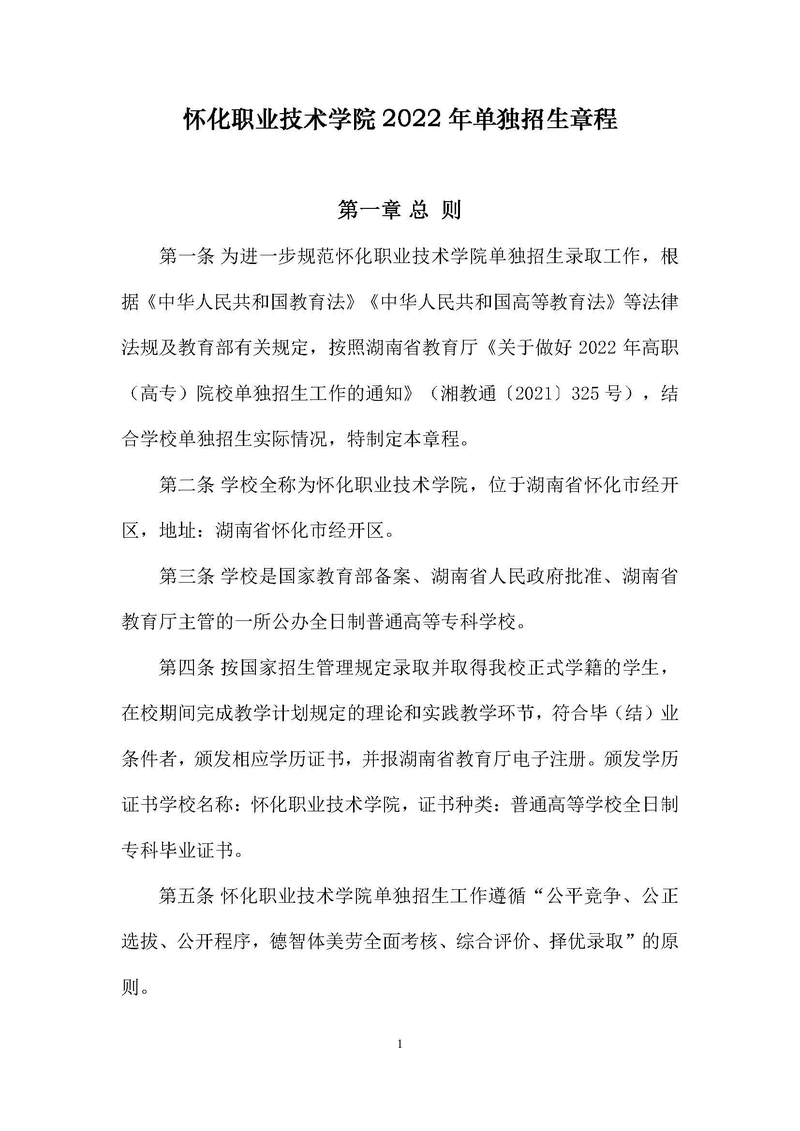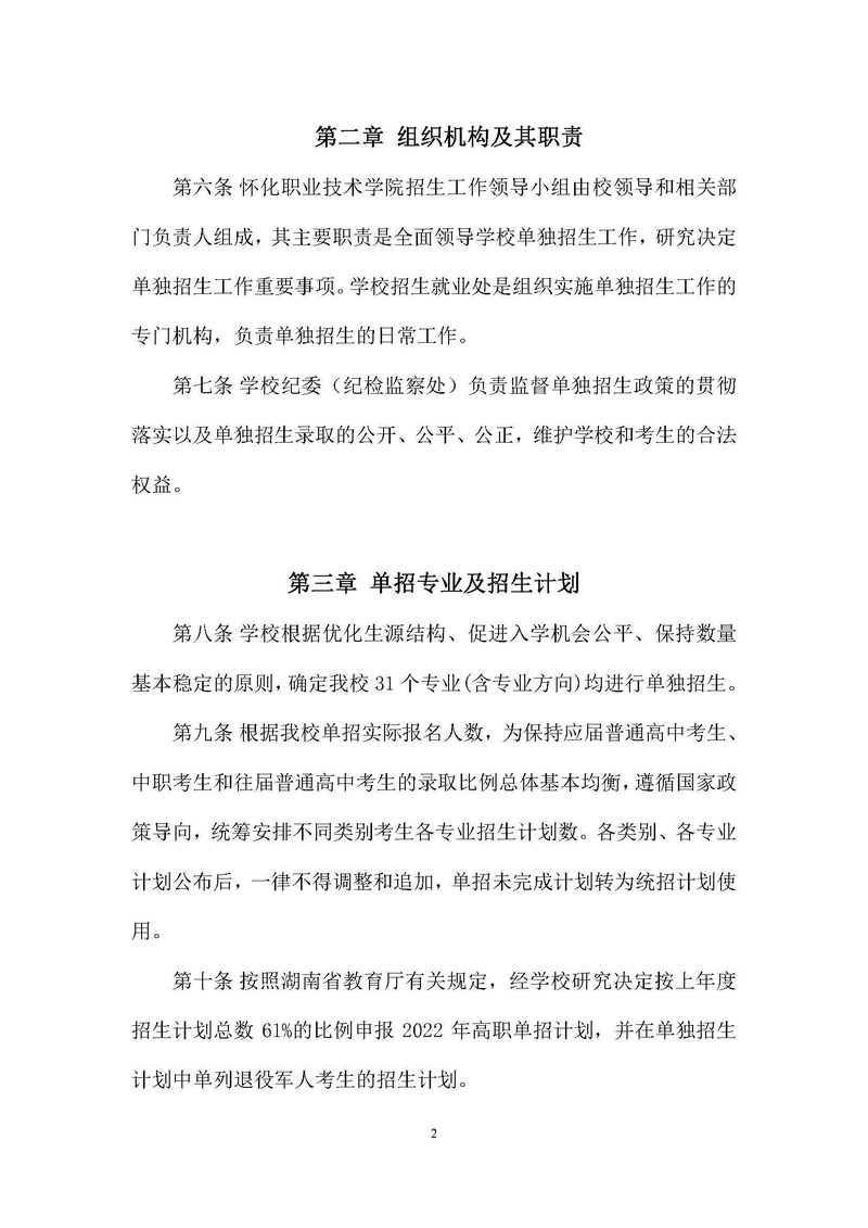 怀化职业技术学院2022年单独招生章程