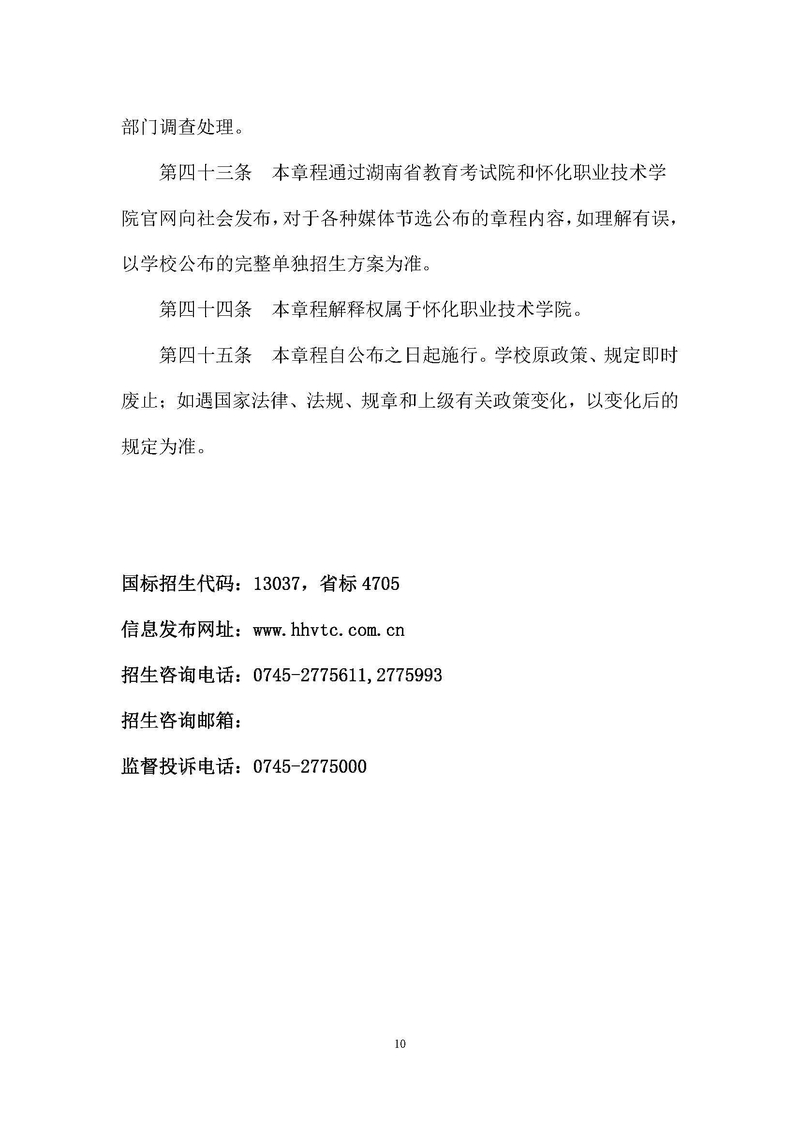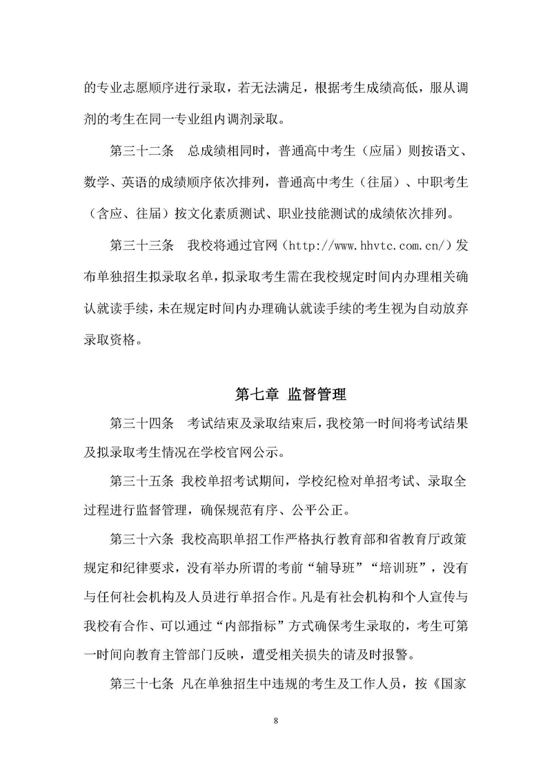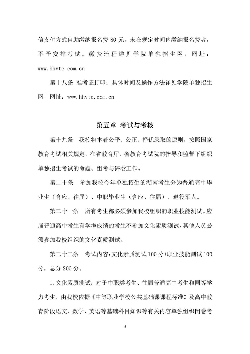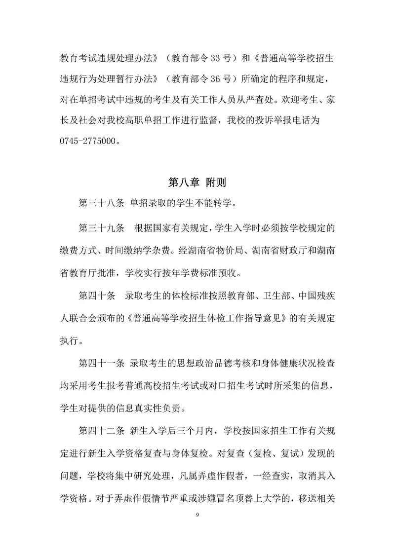 怀化职业技术学院2022年单独招生章程