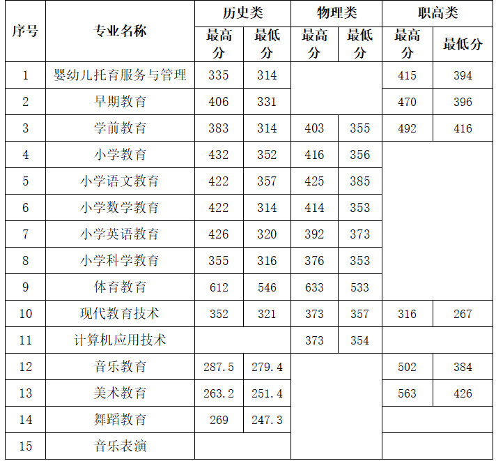 1.音乐教育、音乐表演、舞蹈教育、美术教育专业:普高专业考生文化不分科目类(即艺术历史类、物理类均可填报);