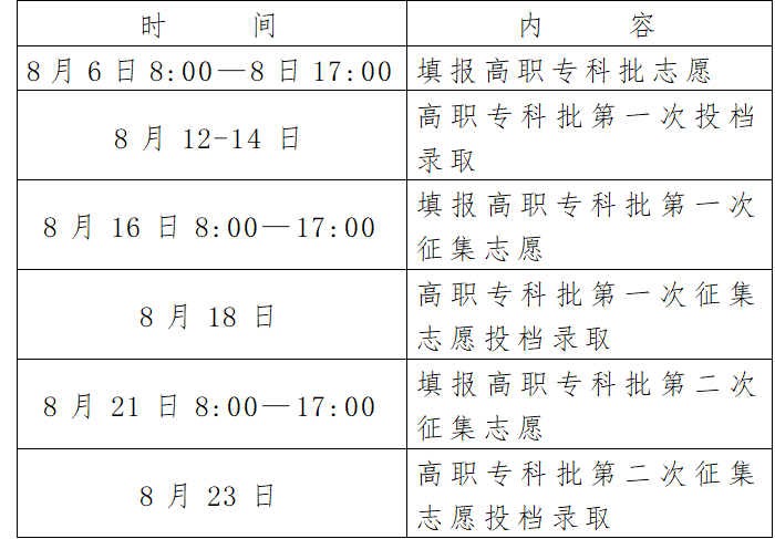 湖南省2024年普通高校招生录取时间表(高职专科批)