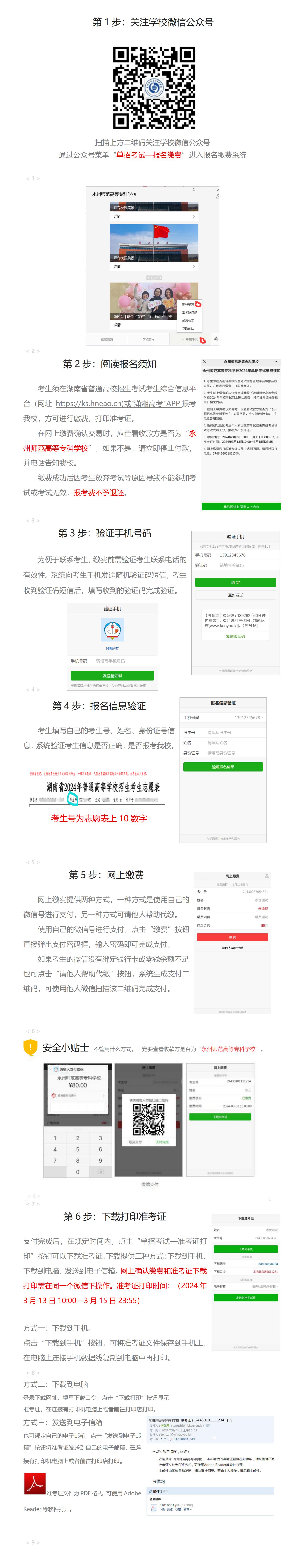 永州师范高等专科学校2024年单招考试网上确认缴费、打印准考证操作指南