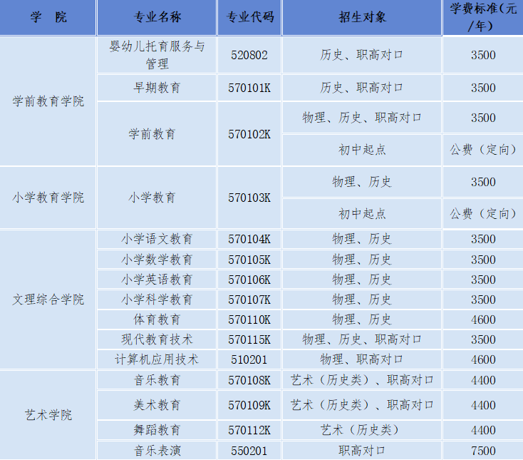 报考类别及录取高中起点招生录取国家任务(计划内)三年制专科面向全省招收普高、职高对口毕业生,考生在当地招生机构报名参加全国统一高考,通过填报志愿由省招生考试机构统一划线,学校通过省教育考试院网上录取,寄发普通高校专用录取通知书。