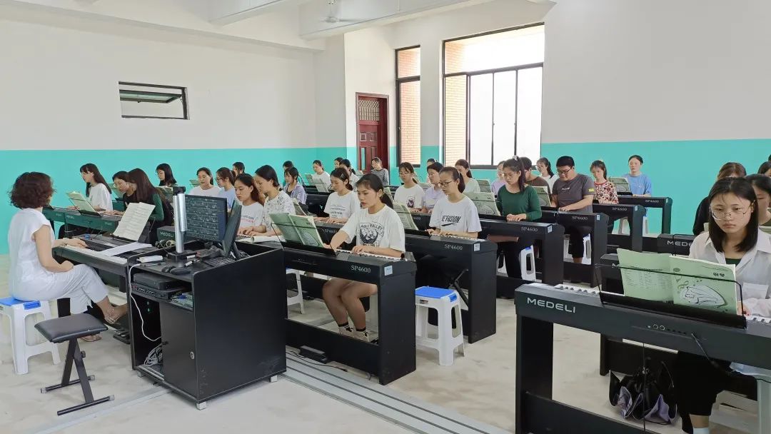 核心课程乐理、视唱练耳、声乐基础、钢琴基础、形体与舞蹈、合唱与指挥、即兴伴奏、地方民族音乐赏析与表演等。