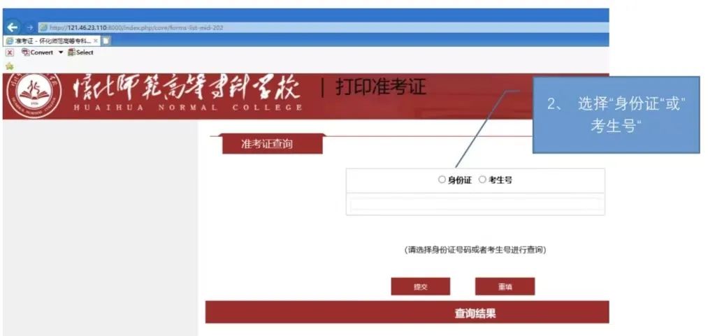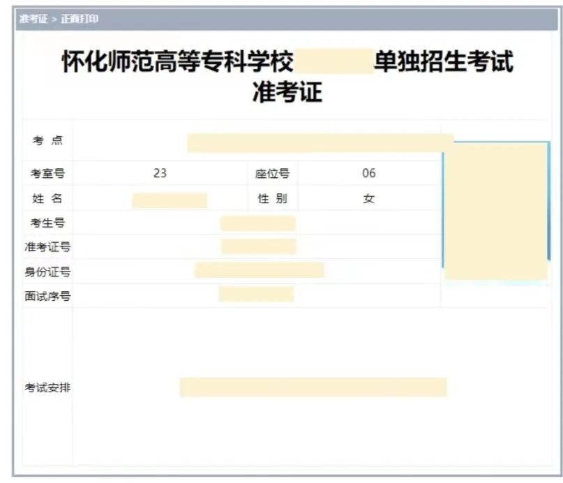 怀化师范高等专科学校 2023 年单招考试准考证打印方式