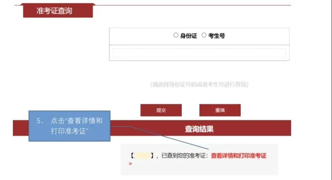 5、 点击“查看详情和打印准考证”。