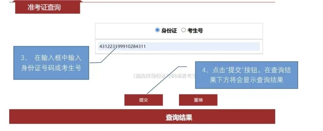 3、 输入身份证号码或考生号。