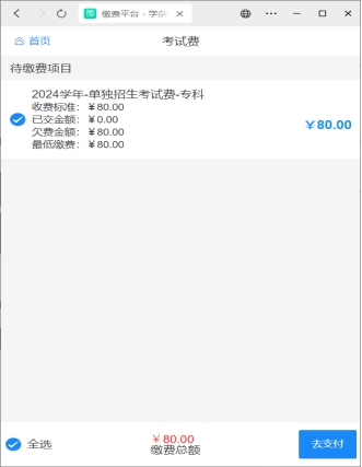 5、确认订单明细和金额,选择缴费方式后 点击缴费