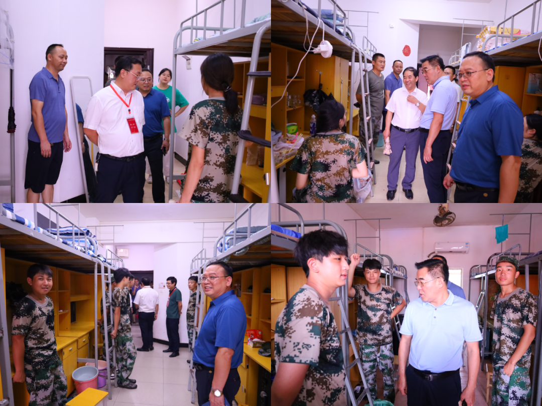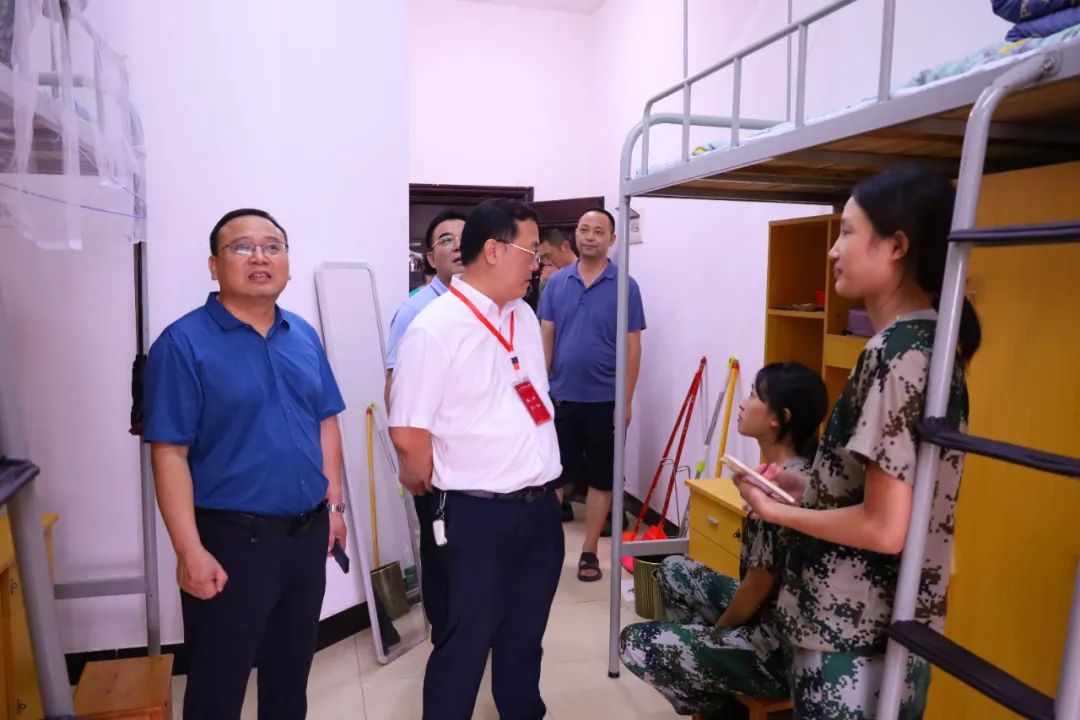 李华一行仔细查看新生的住宿环境,亲切询问同学们的入校感受、军训生活、吃住情况等,叮嘱大家照顾好身体,遇到困难及时向老师进行反馈。每到一处,校领导们都详细了解学生用水用电、消防安全、基础设施使用等情况,对于存在的安全隐患提出了整改意见和建议,要求相关部门明确整改措施,跟踪落实,按时整改到位,为学生创造良好的学习和生活环境。走访过程中,亲切的话语,真诚的关爱,让学生寝室中传递出阵阵舒心的笑声。