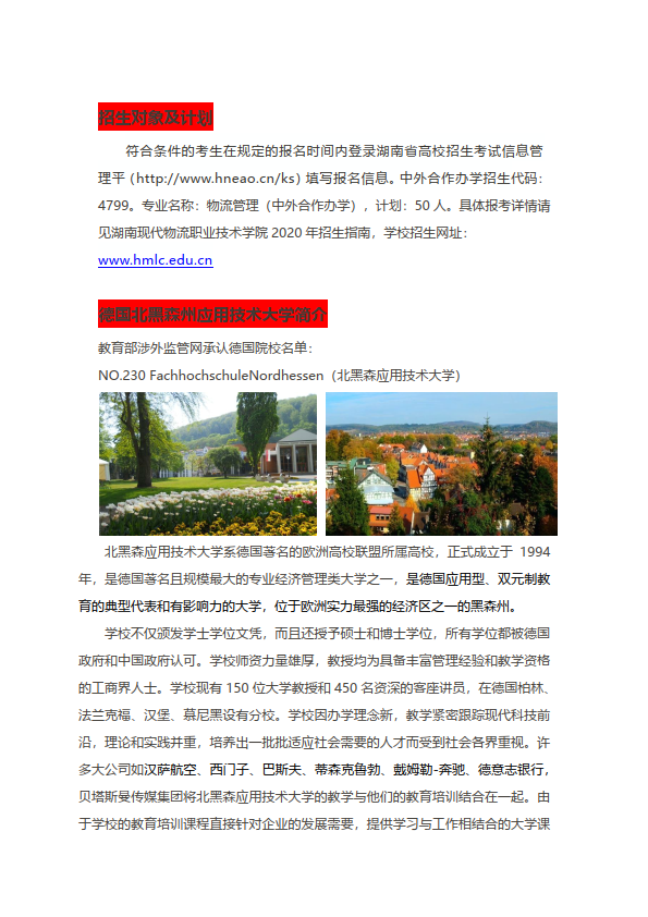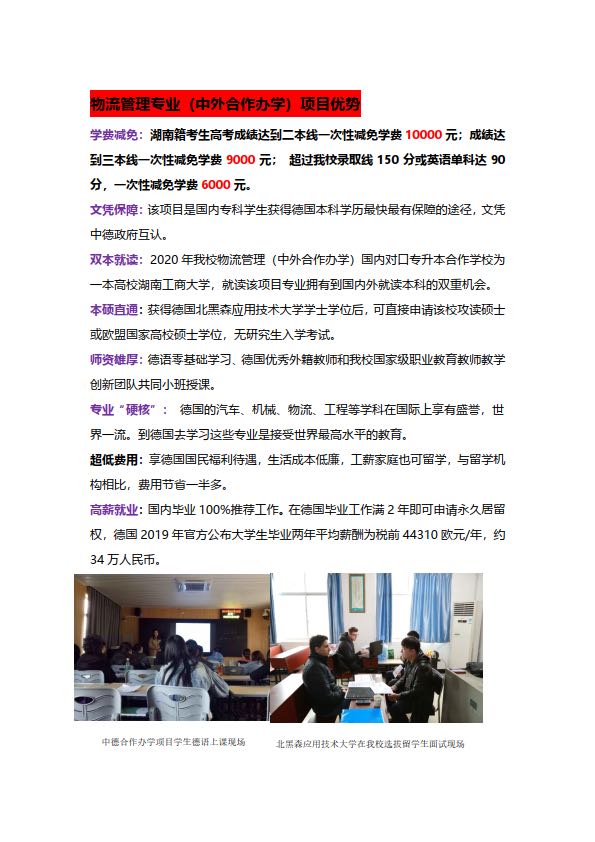 2020年物流管理(中外合作办学)专业招生简章
