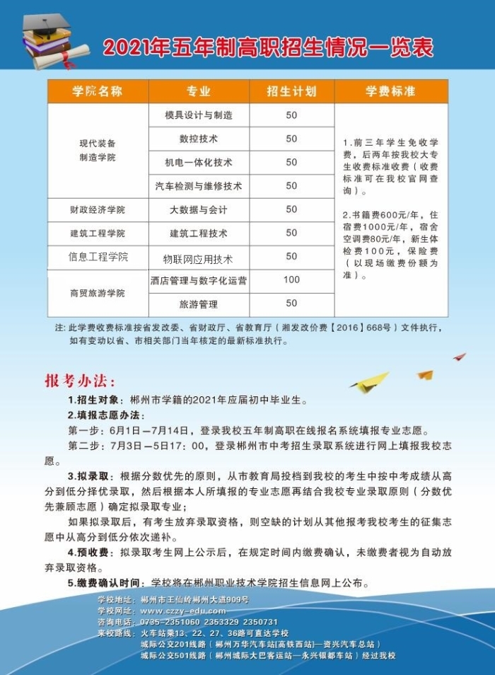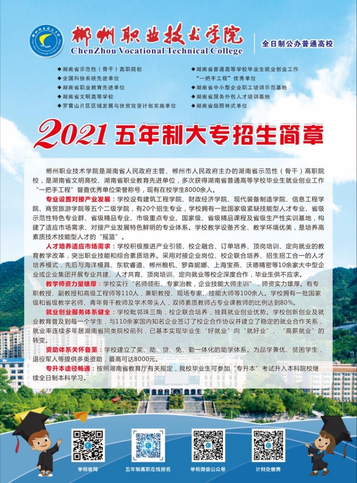 郴州职业技术学院2021年五年制大专招生简章