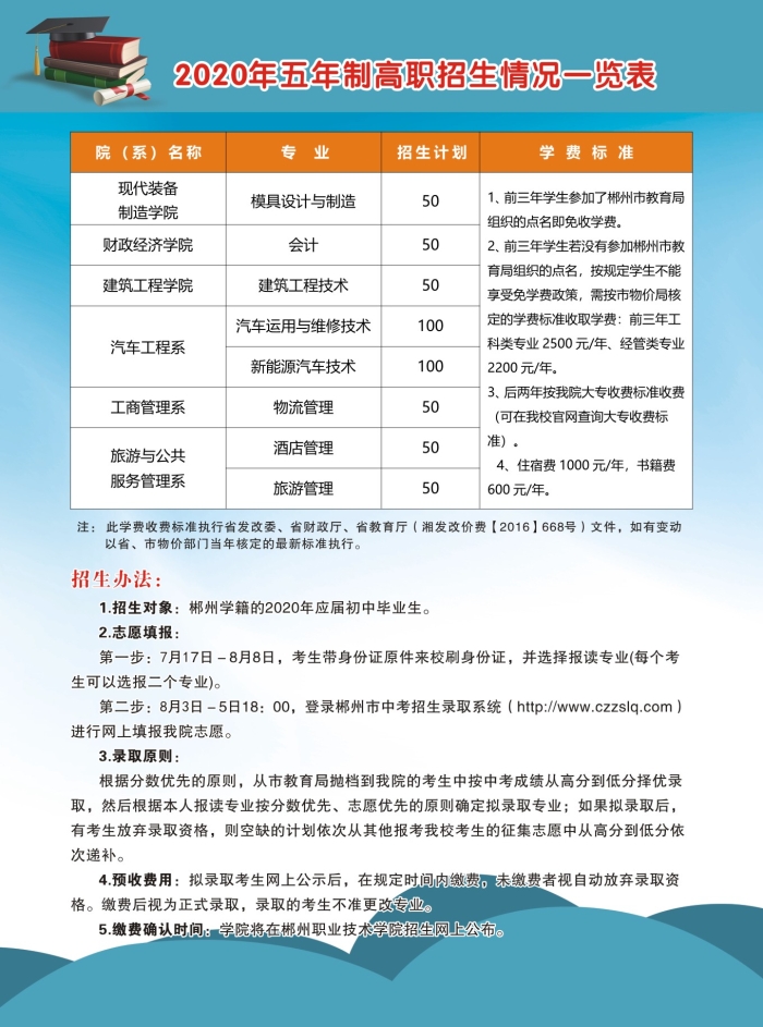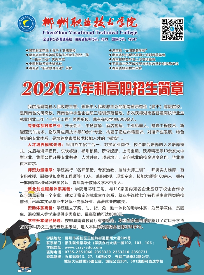 郴州职业技术学院2020年五年制高职招生简章
