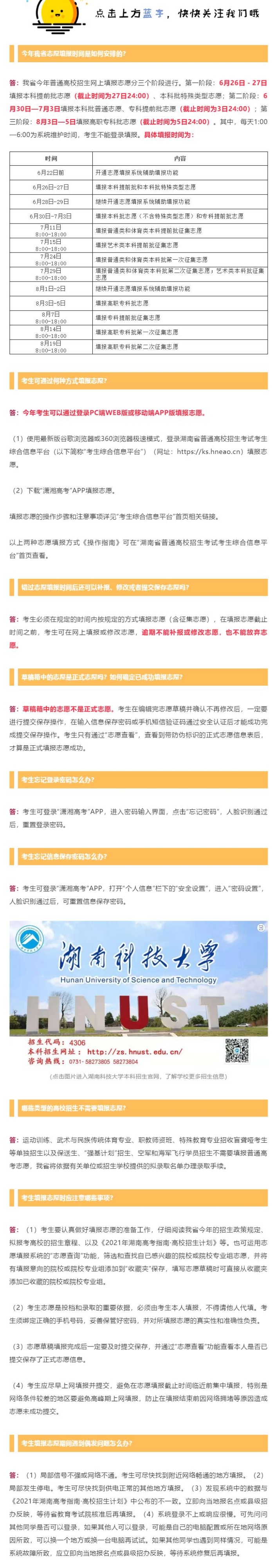 2021年湖南省高考志愿填报须知