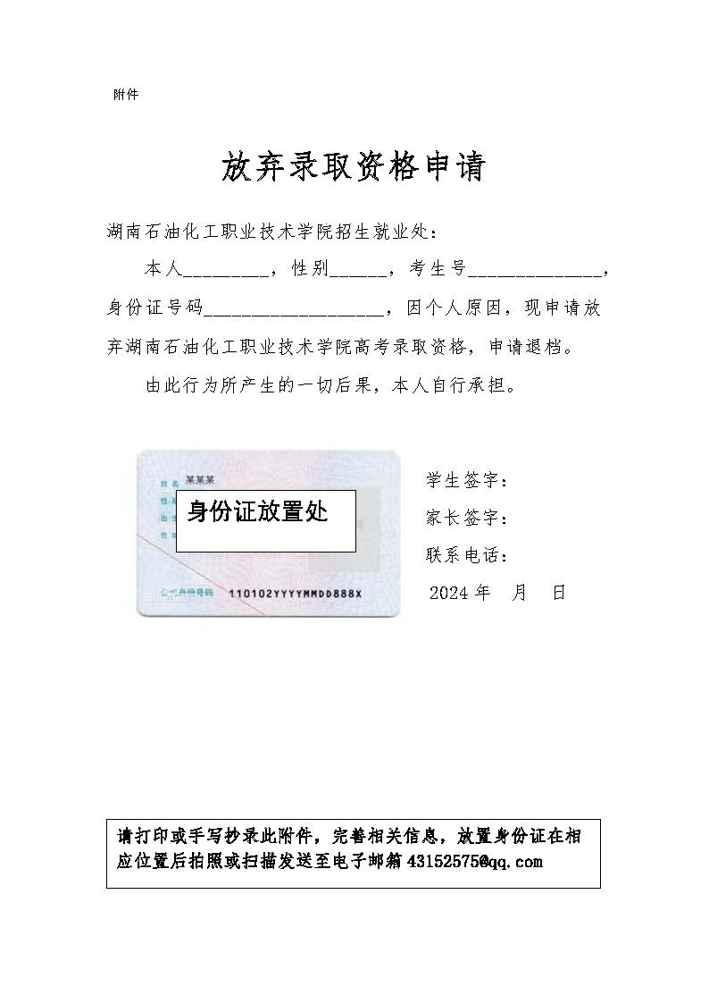根据湖南省教育考试院相关工作安排,2024年8月14日12:00之前各高校需完成阅档并上传进档考生的预录信息。经研究,我校在2024年8月13日下午17:00之前可受理考生的退档申请。咨询电话:0730-3066601;0730-3066602。