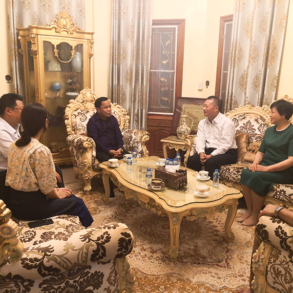 ▲老挝人民革命党中央政治局委员、书记处书记、中央办公厅主任坎潘.蓬玛塔会见了曾震亚、李定珍一行。