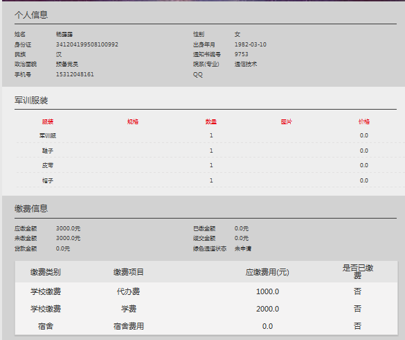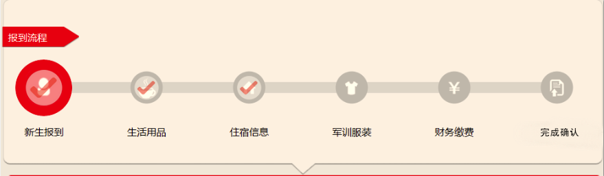 登陆后,页面显示报到流程,以及新生个人信息页面。