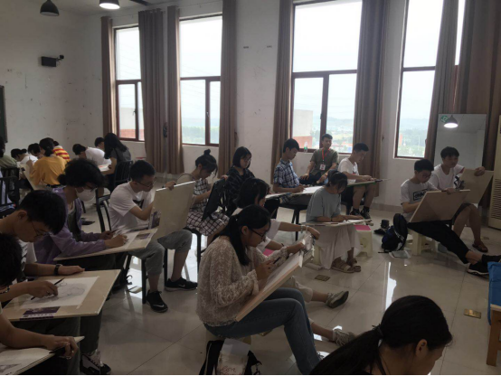炎热的天气并没有影响考生们的积极性,他们遵守秩序、听从指挥,在工作人员的引导下凭身份证、准考证分别进入7个专业考场,考试现场井然有序。