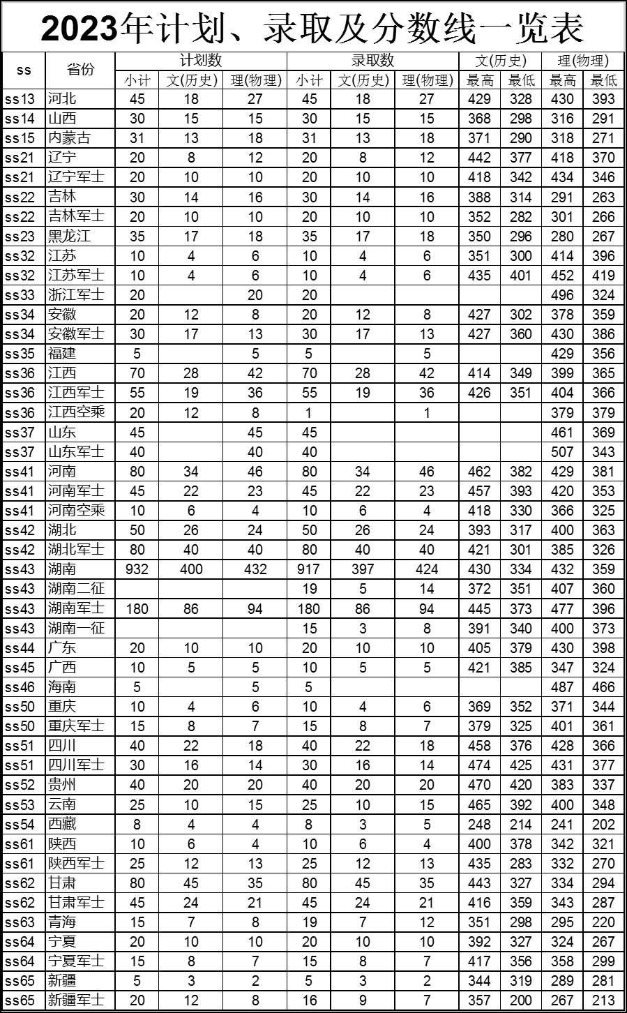 2023年高考计划、录取及分数线一览表