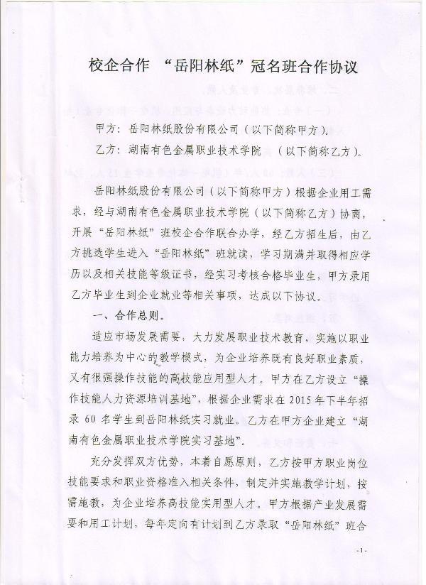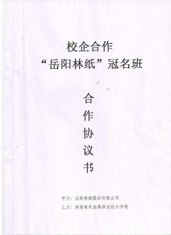 2015年湖南有色金属职业技术学院根据与岳阳林纸股份有限公司开展“岳阳林纸” 校企合作订单班签订的协议要求,在全省范围内进行招生工作,招生公告如下: