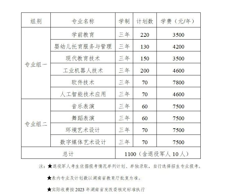 2.报名方式:单独招生报名方式为网上报名,考生可登录湖南省普通高校招生考试考生综合信息平台(网址:https://ks.hneao.cn)或“潇湘高考”APP(通过苹果应用商店、腾讯应用宝、华为应用商店或“考生综合信息平台”首页下载APP)填报报考信息。3.志愿填报:根据考生类别我校设专业组一和专业组二,考生根据个人意愿可选择一个专业组报考。填报我校志愿的考生选择专业组一时可任选2个专业进行填报,选择专业组二时可选取填报2个专业,并表明是否同意专业调剂(注:不可同时跨专业组一和专业组二填报,否则第二专业志愿无效)。在报名系统中多填专业视为无效。4.考试缴费:第一志愿符合考试条件的考生于2023年3月1日8:00—3月3日17:00进入我校微信公众号按《缴费指南》网上缴纳考试费,每人80元,不接受现场缴费;第二志愿符合考试条件的考生于2023年4月2日8:00—4月4日17:00进入我校微信公众号按《缴费指南》网上缴纳考试费,每人80元,不接受现场缴费;缴费流程详见学校招生网,网址:https://www.newyishi.com5.准考证打印:第一志愿考生2023年3月6日—3月8日在我校微信公众号自行打印《准考证》;第二志愿考生2023年4月5日—4月6日在我校微信公众号自行打印《准考证》。具体方法详见学校招生网,网址:https://www.newyishi.com(注:在规定时间内未缴纳考试费者、未打印《准考证》者,视为放弃单招考试,不予安排考场。)6.退役军人资料提交:退役军人报考我校后,须在2023年2月23日8:00—24日17:00到学校招生就业科(综合楼416)按要求提交湖南省2023年高职单独招生报名身份审核表、退出现役证或转业证。不能提供上述资料的考生以普通高中往届生或同等学力人员身份报考,不能享受免文化成绩测试的政策。提供虚假资料的,我校将及时上报省教育考试院按规定追究相关责任。7.免试、免测考生资料提交: (1)免试直接录取。根据教育部政策规定,在世界技能组织主办的“世界技能大赛”中获奖的中国国家代表队选手符合高考报名条件的中职在校生,应届毕业当年可保送我校就读;在校学习期间获“全国职业院校技能大赛”“中国职业技能大赛”一、二、三等奖及“湖南省第一届职业技能大赛”“湖南省职业院校技能大赛”一等奖的中职应届毕业生,可申请免试就读我校,由我校录取到学生获奖赛项对应的专业。 (2)职业技能特长生免技能测试。在校学习期间获“湖南省职业技能大赛”“湖南省职业院校技能大赛”二、三等奖的中职应届毕业生,报考获奖赛项对口专业可免予职业技能测试。其中获得二等奖的学生可按技能测试成绩满分计入综合成绩;获得三等奖的学生可按技能测试成绩满分的80%计入综合成绩,也可选择参加我校组织的技能测试取得测试成绩,取两项成绩的较高分数计入综合成绩。(考生如需跨专业,不能享受免试政策)。符合以上两项条件的考生,报名后须将本人身份证复印件、《湖南省中学生职高对口技能等获奖登记表》《湖南省职业技能大赛获奖考生资格审查表》、获奖证书、获奖文件的复印件于2月23日8:00——2月24日17:00送达学校招生就业科(综合楼416)审核。4►日程安排