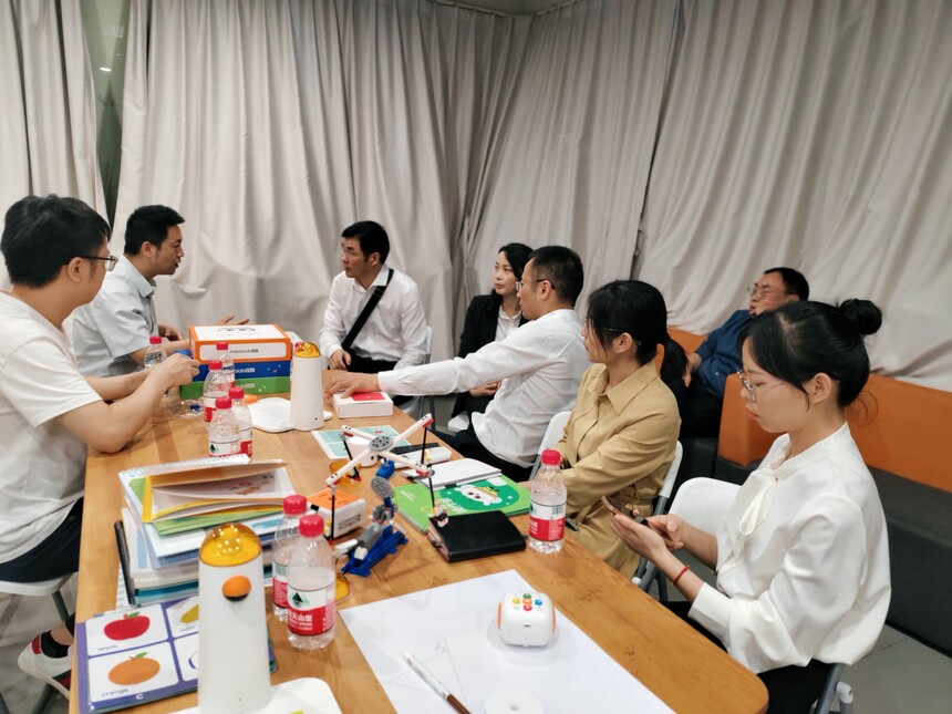 深圳市玛塔创想科技有限公司,是一家经营机器人、电子产品、教育产品及相关技术服务的公司。公司的核心产品教育编程机器人荣获芬兰教育认证,其实物编程机器人产品,通过直观易上手且脱离电子屏幕的实体编程积木块,启蒙逻辑思维能力、创新能力、应变能力和协同合作能力。考察调研组详细了解各年龄段的编程教育解决方案,并就课程资源的共建、师资培养、实训室建设进行了深度的探讨。