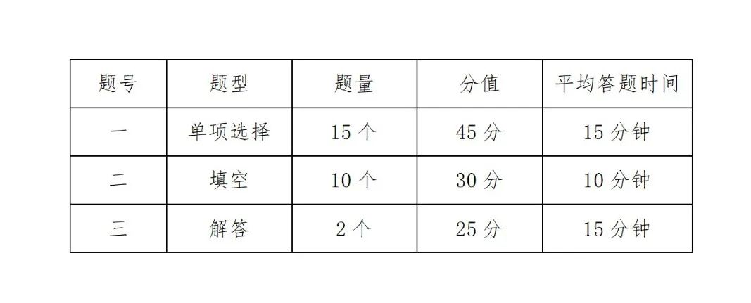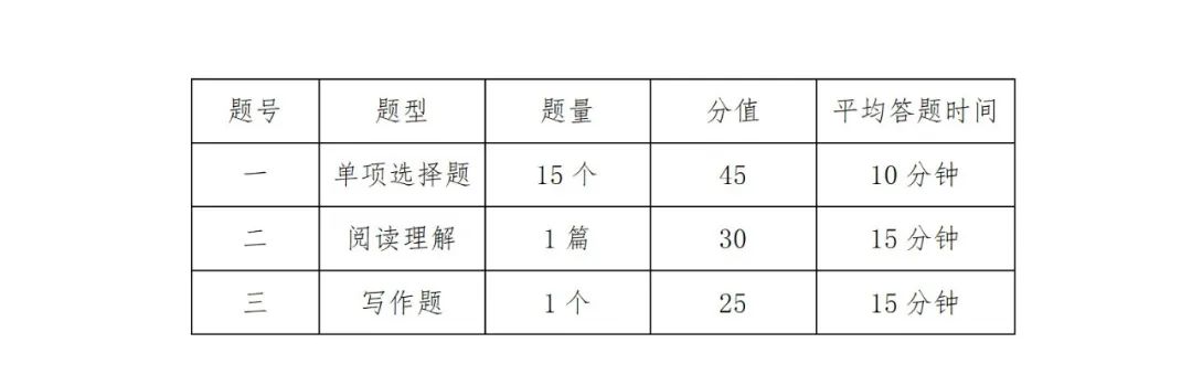 ①试卷题型:单项选择题、阅读理解题和写作题。