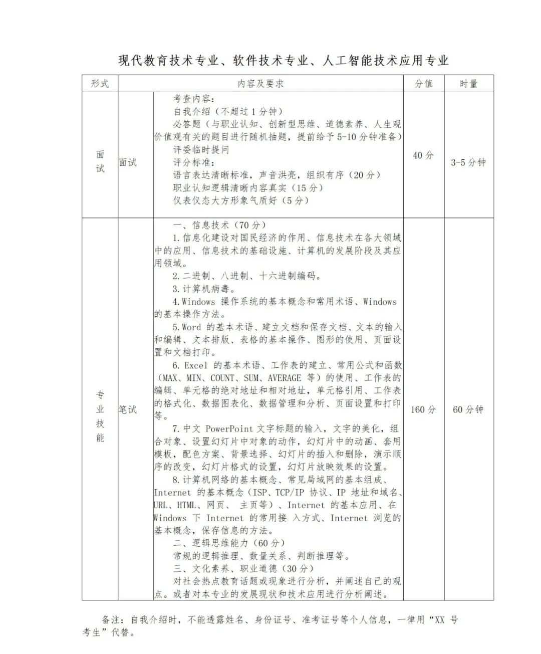 现代教育技术专业、软件技术专业、人工智能技术应用专业