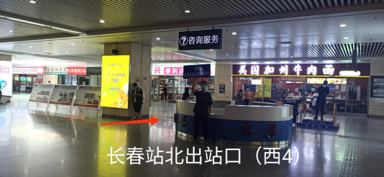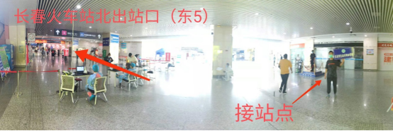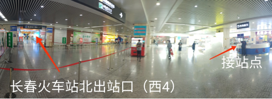 注:长春火车站南出口不设接站点。如从南出口出站人员请走火车站南北通道,从南北通道(北口)出来,走长春站换乘中心1号门下地下一层前往西4出站口咨询处有接站点。