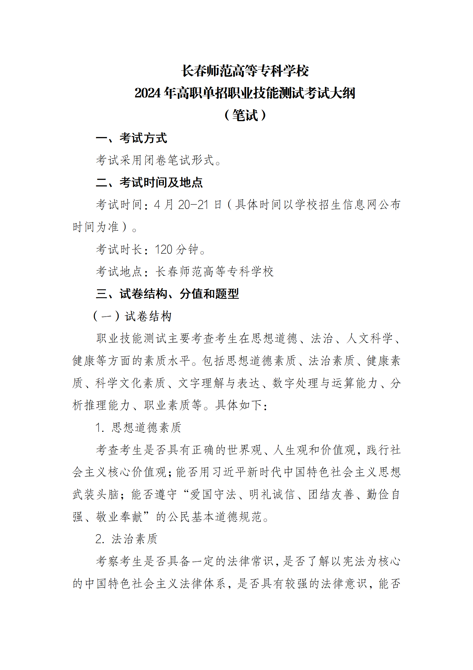 2024年高职单招职业技能测试考试大纲
