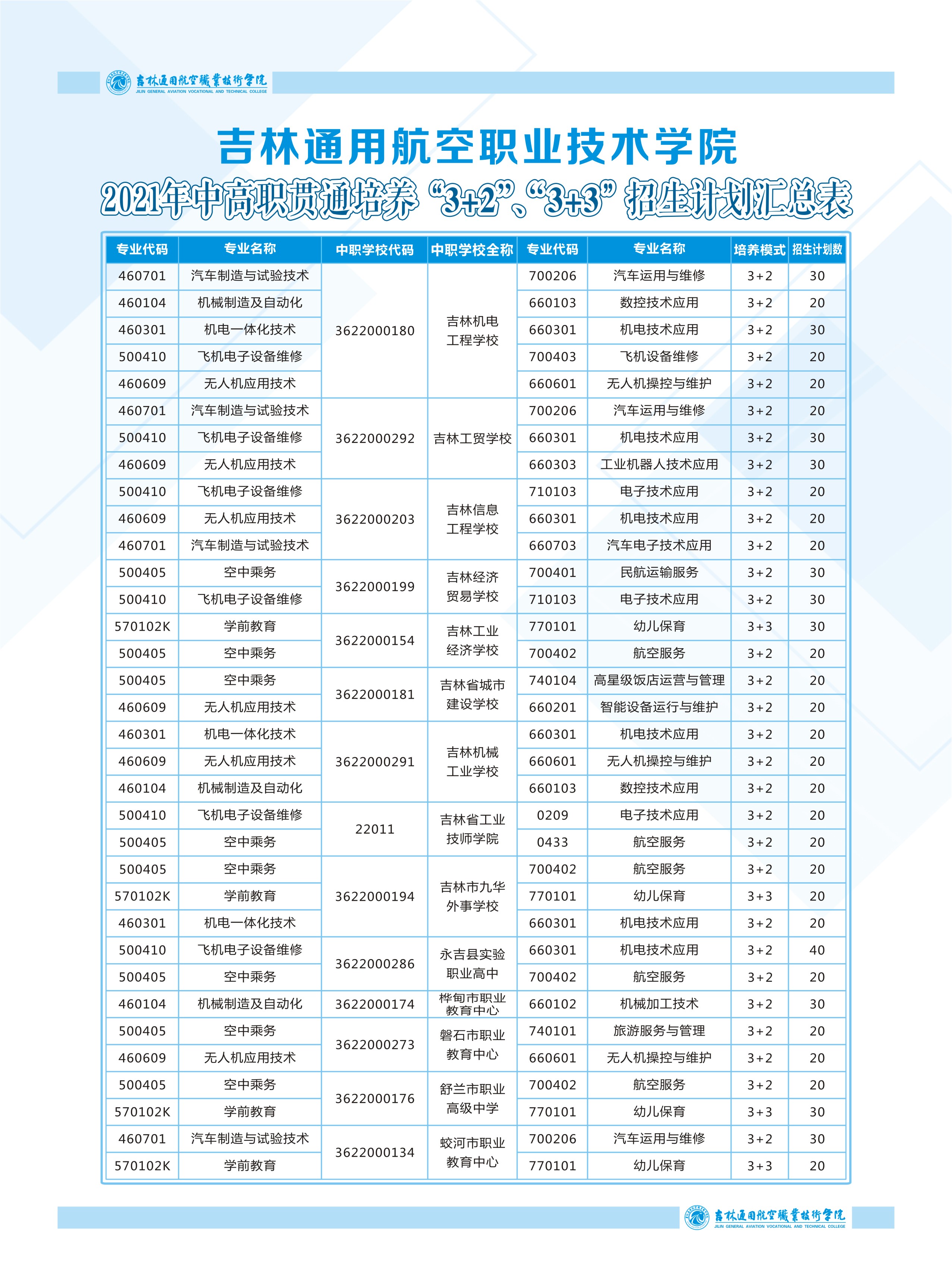 2021年高职贯通培养 “3+2” 、“3+3” 招生计划