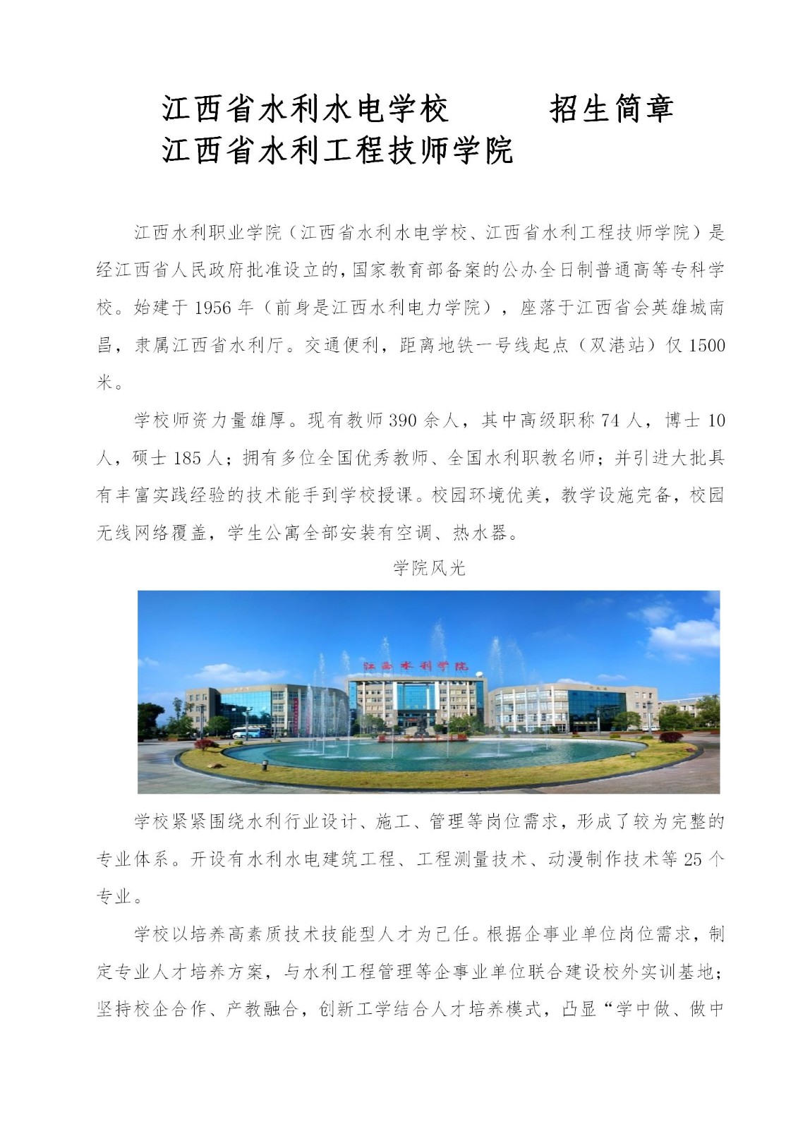 2021年江西省水利水电学校、江西省水利工程技师学院招生简章