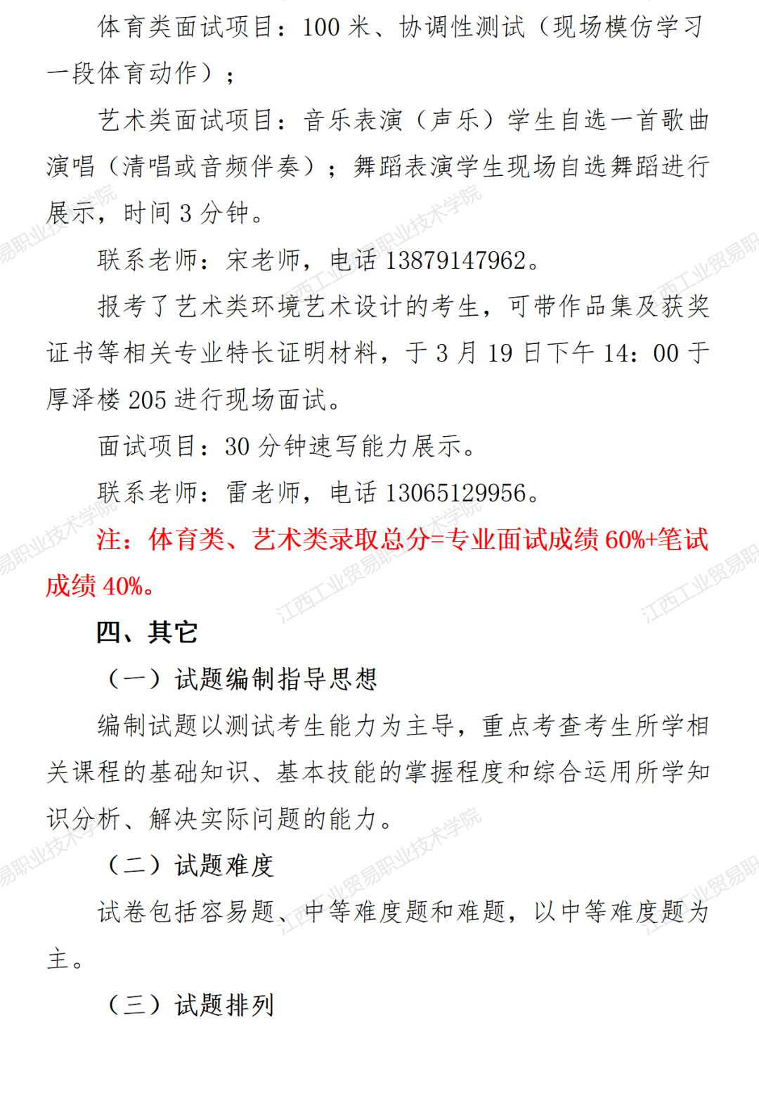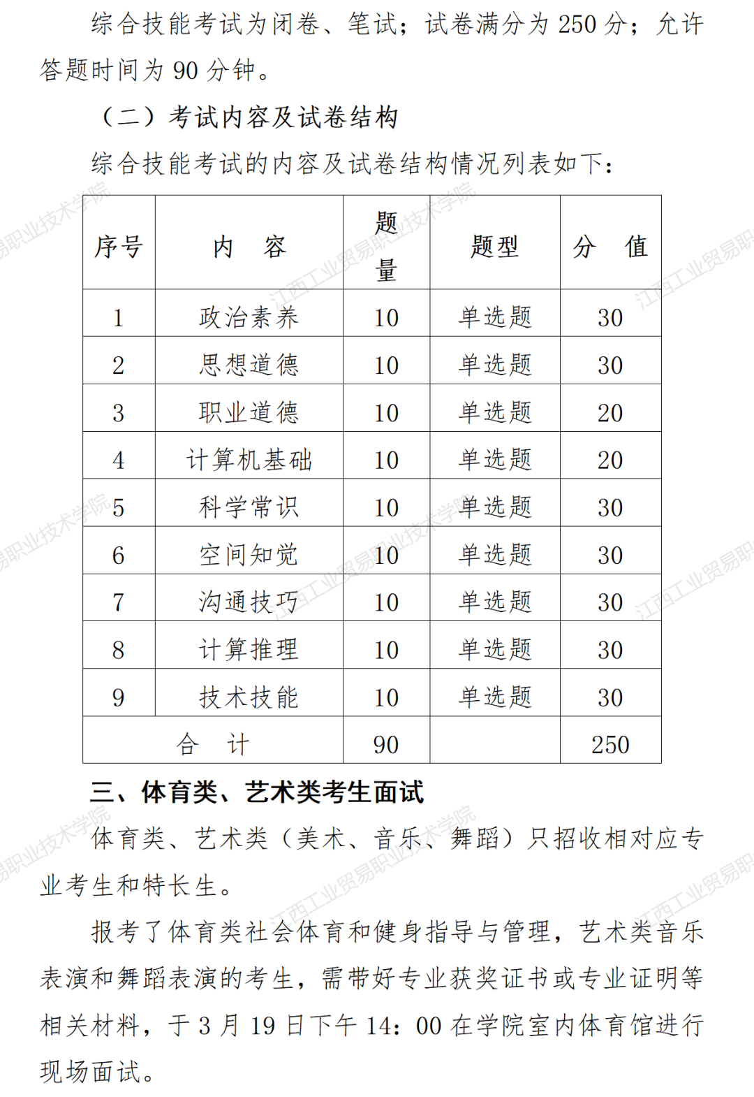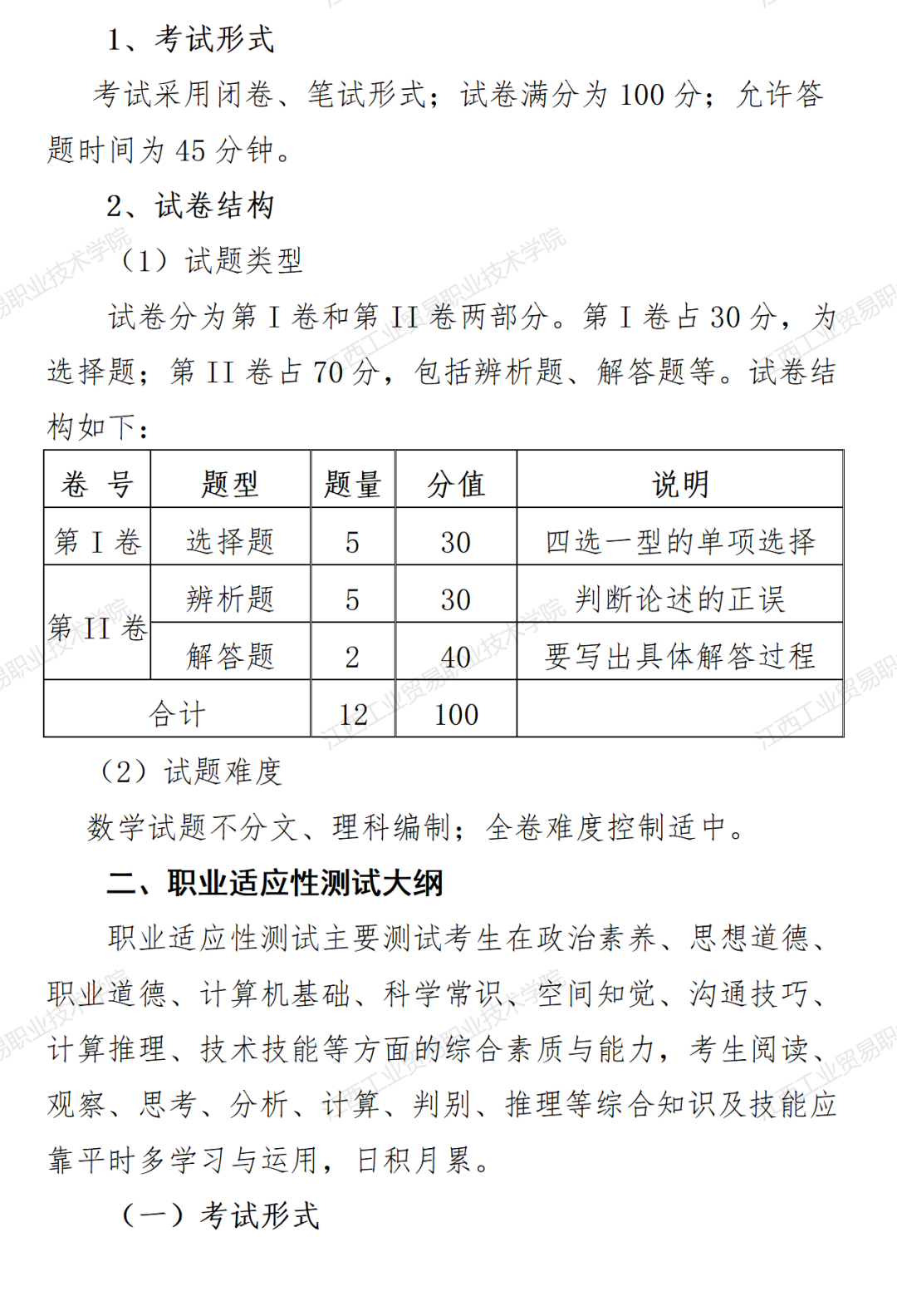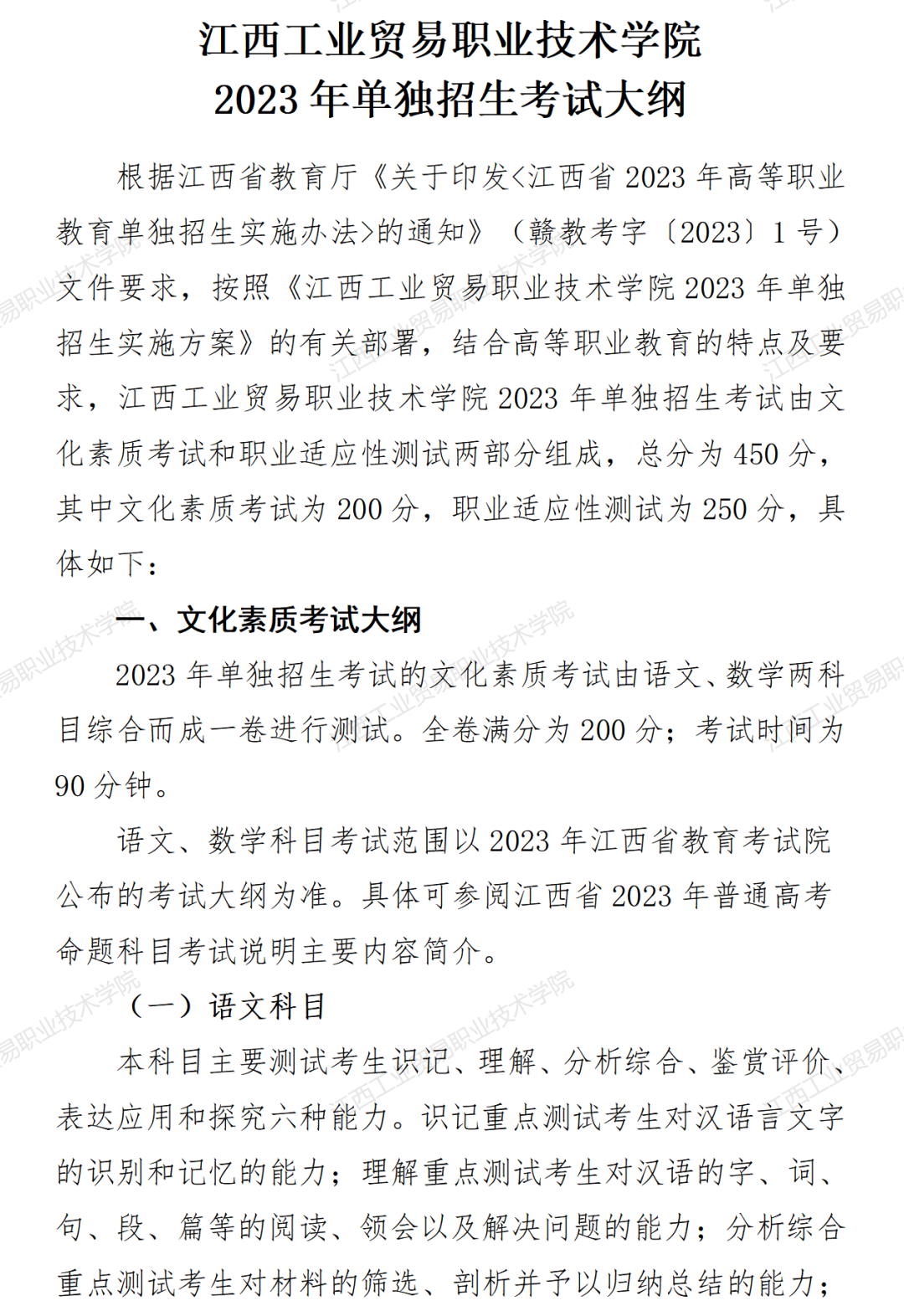 江西工业贸易职业技术学院2023年单独招生考试大纲