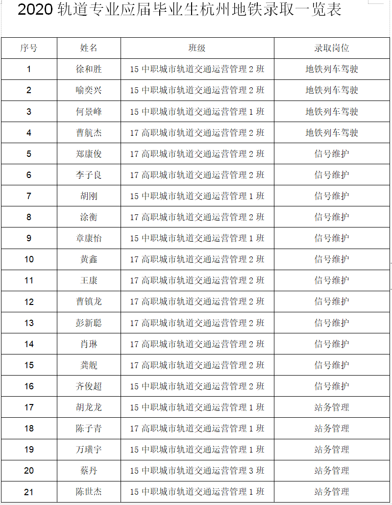 毕业生面试成功杭州市地铁集团有限责任公司运营分公司