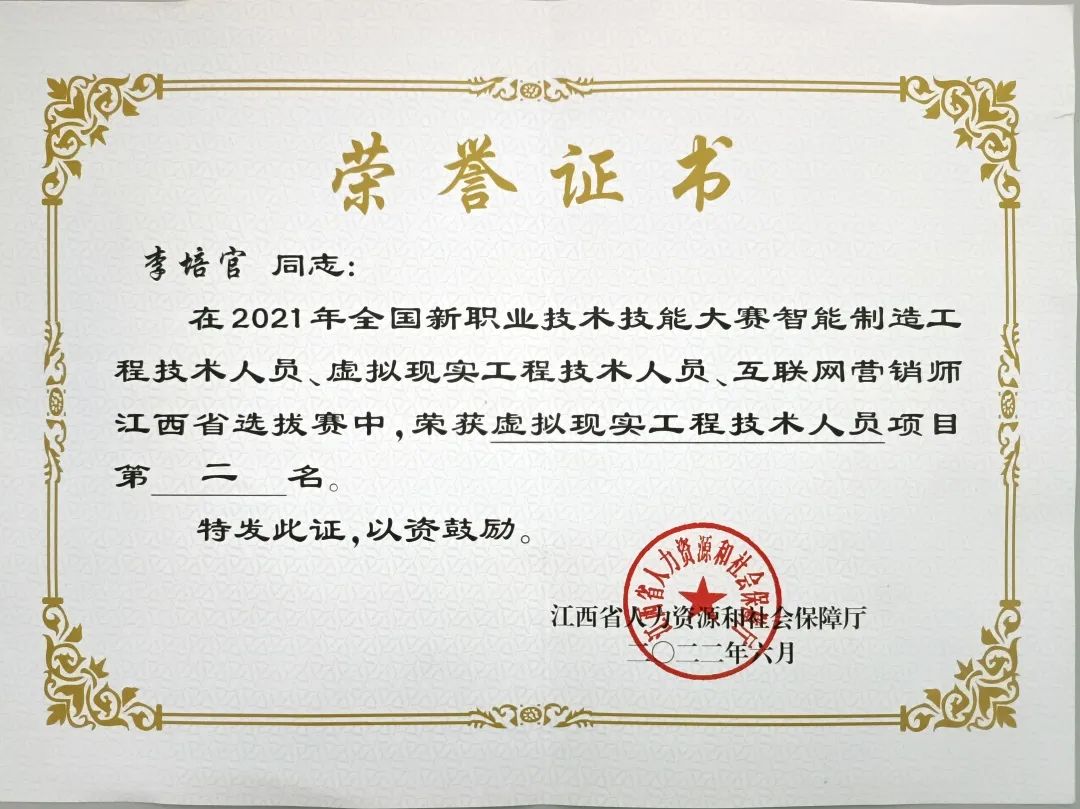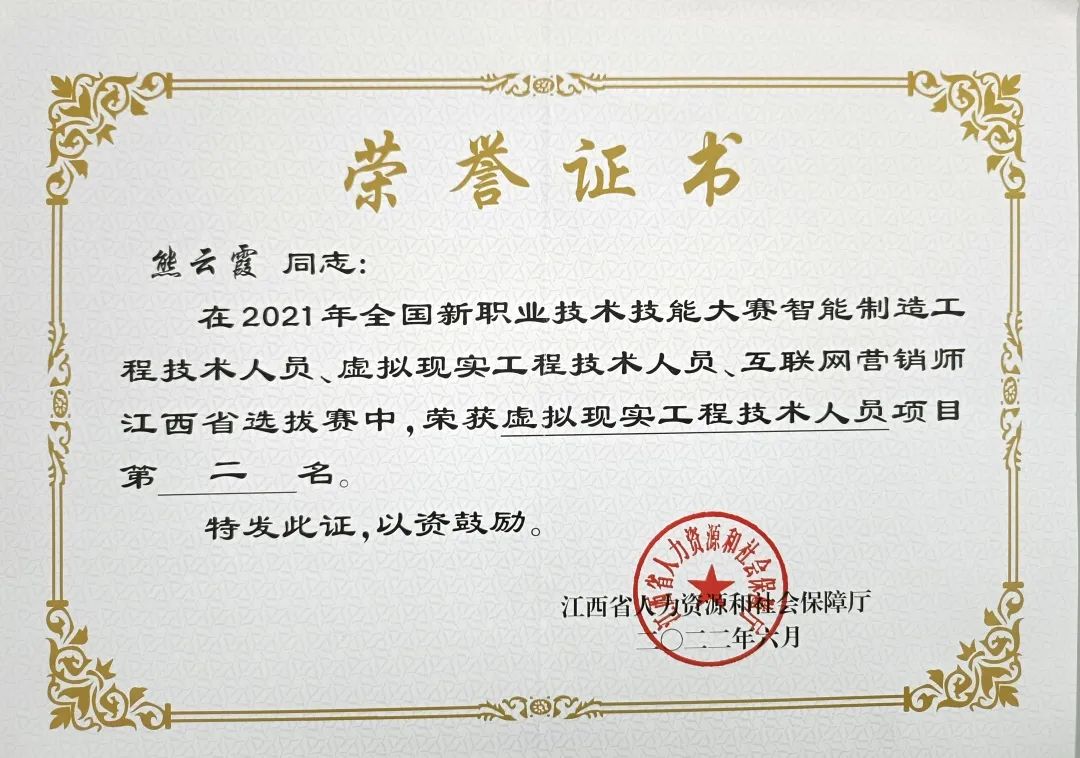熊云霞和李培官两位老师在2021年全国新职业技术技能大赛虚拟现实工程技术人员江西省选拔赛中获第二名