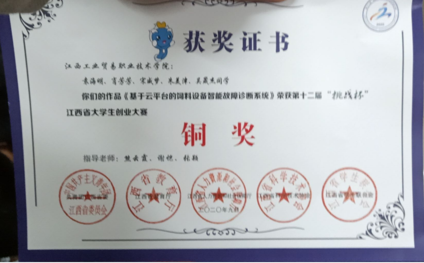 熊云霞老师带领学术在第十二届“挑战杯”江西省大学生创业大赛中获铜奖