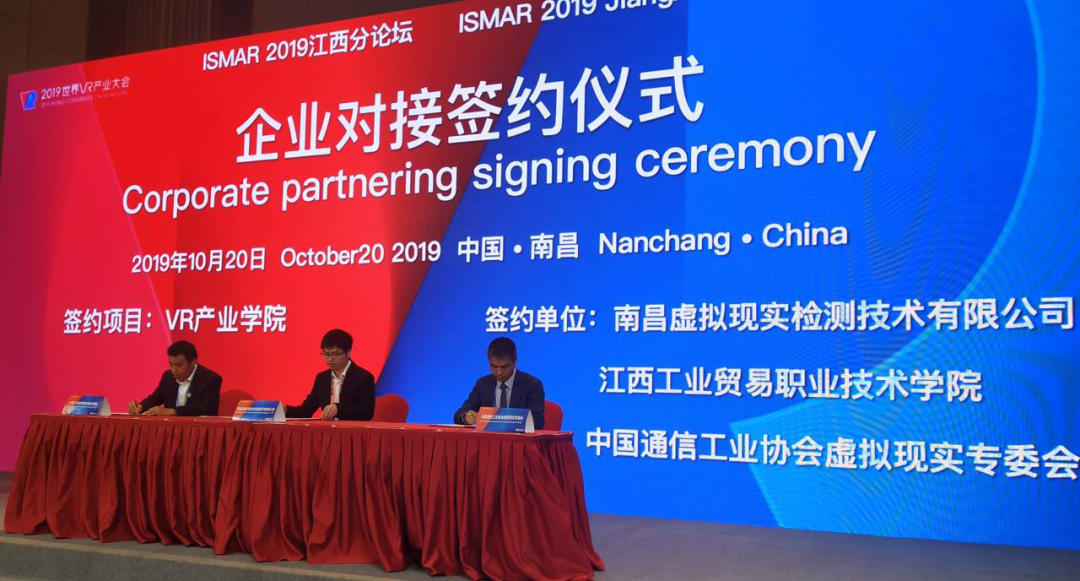 与中国通信工业协会VR专业委员会、南昌虚拟现实检测技术有限公司(国家级检测中心)、北京北建大科技有限公司、江西拓荒者科技有限公司等企业在南昌VR产业园合作实训基地