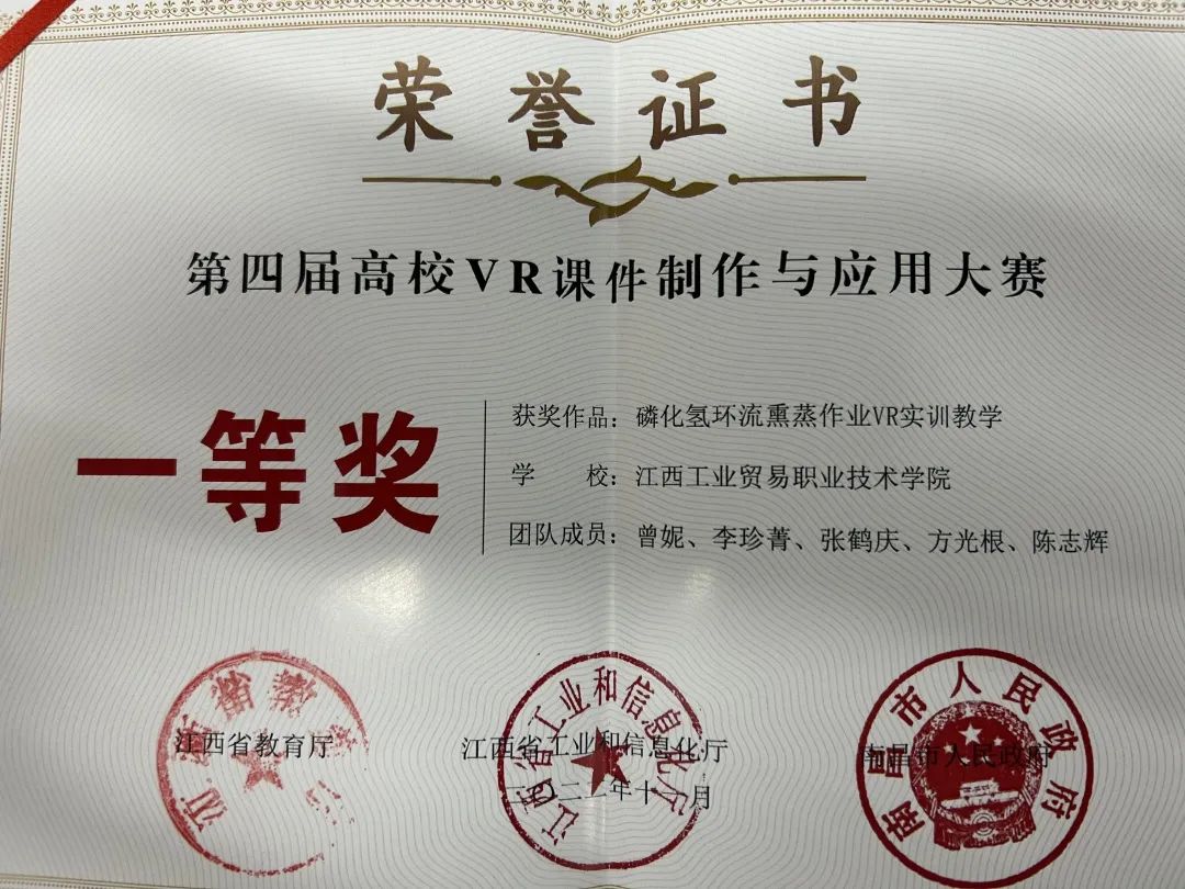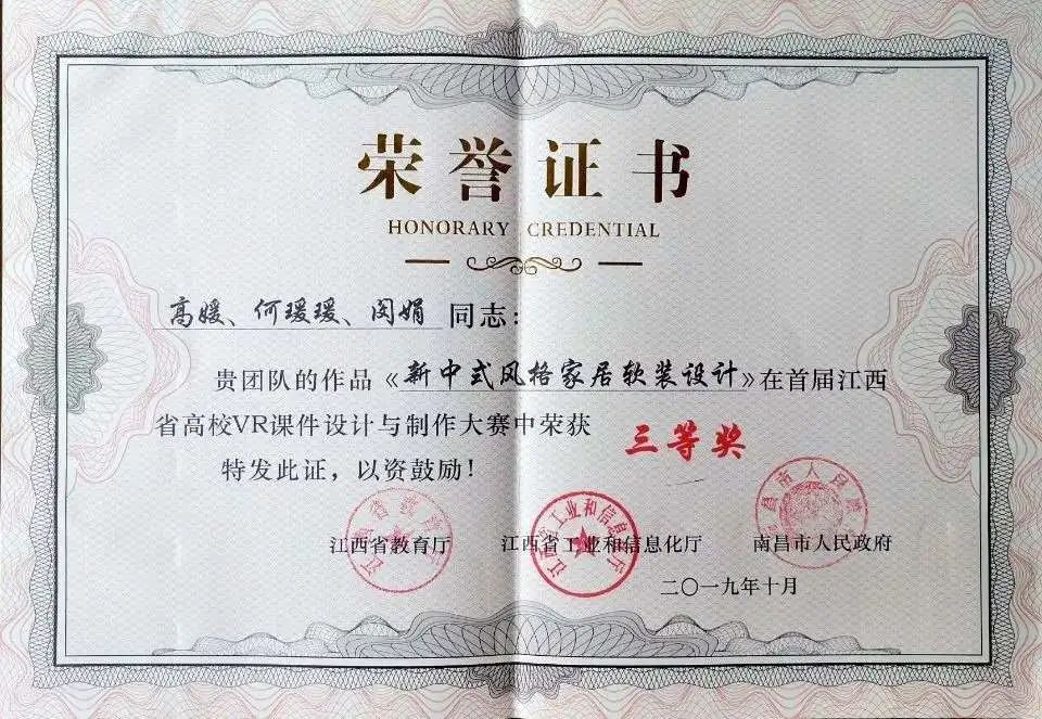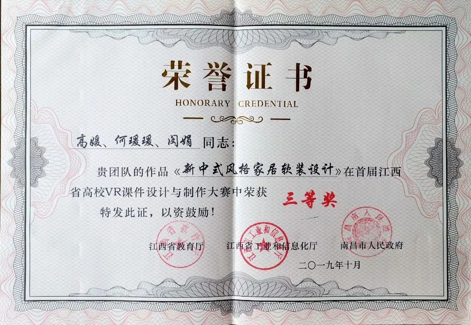 高媛、何瑗瑗、闵娟三位教师在首届江西省高校VR课件设计与制作大赛中荣获三等奖