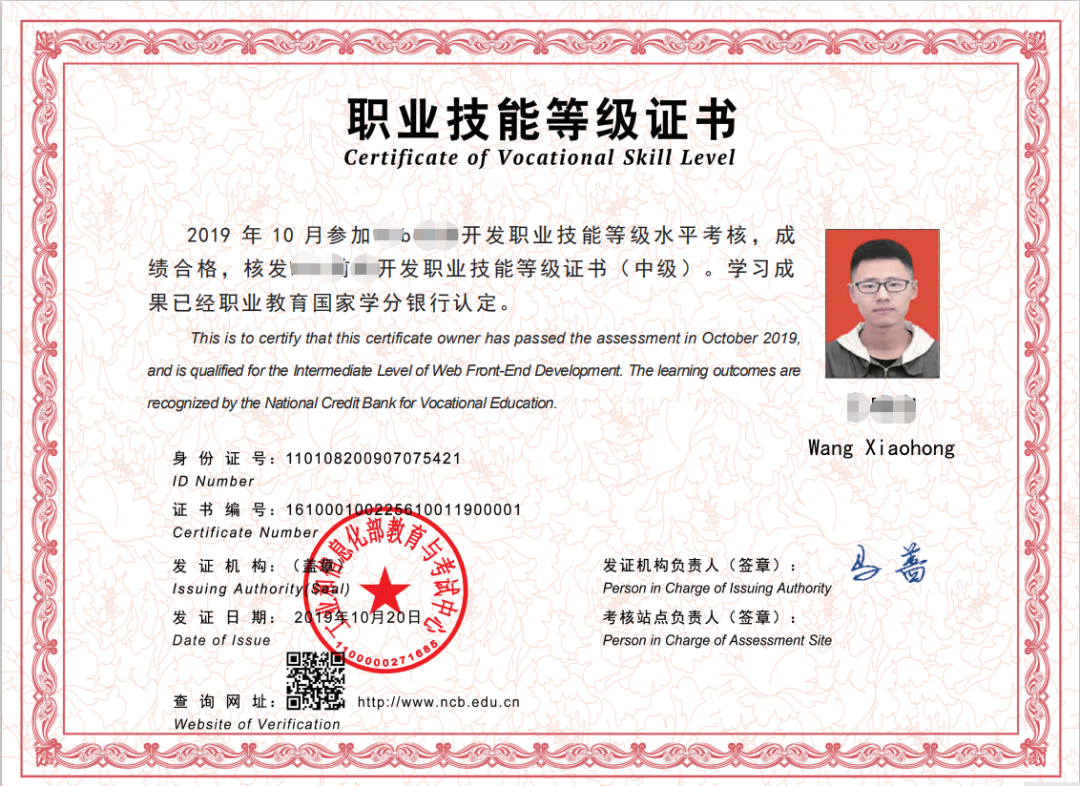 2020年VR专业在虚拟现实应用开发职业技能等级证书(中级)考试中通过率达百分之90。证书如下: