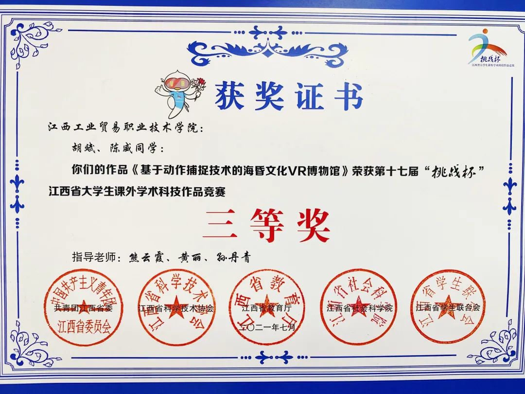 VR专业师生在第十七届“挑战杯”江西省大学生课外学术科技作品竞赛中获三等奖