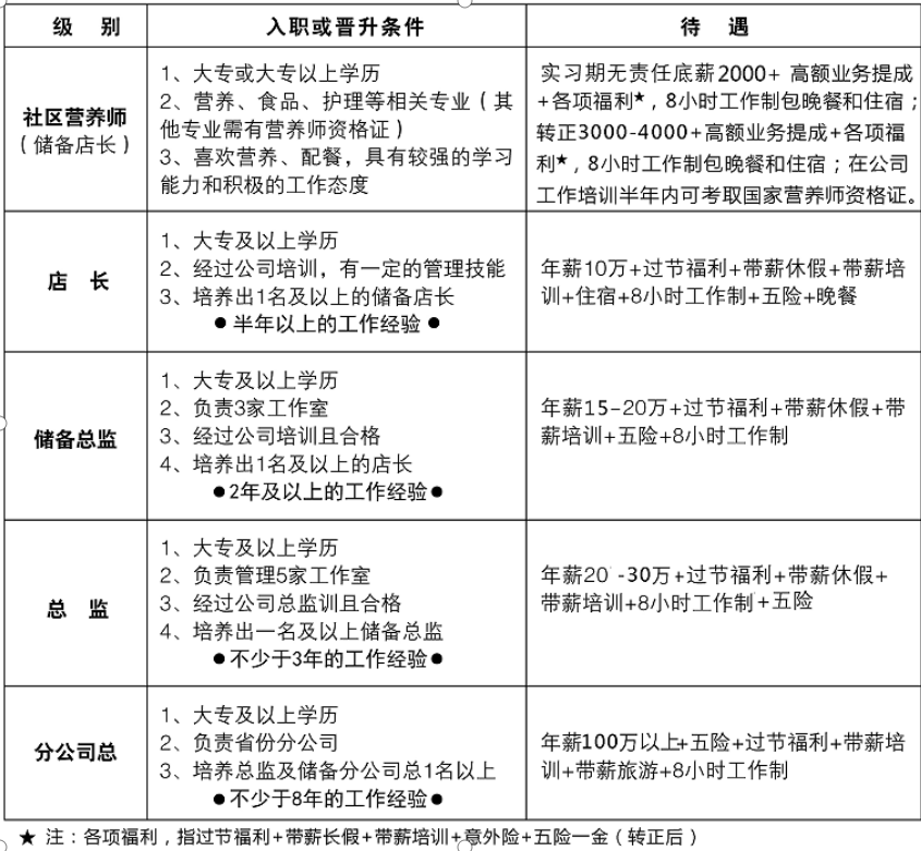 1.在营动智能、盛世康禾等健康管理连锁企业及养老机构从事健康管理师、社区营养师、营养咨询师工作;