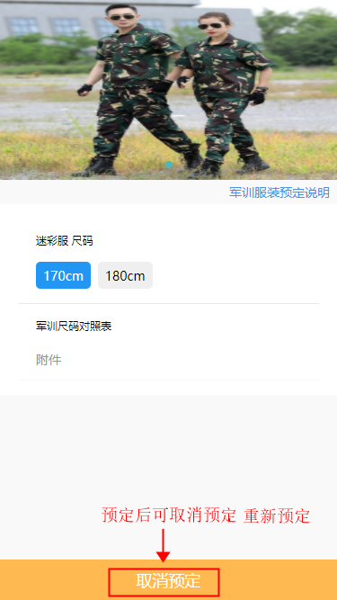6、学生点击军训服装服务,进入服装尺码的信息登记,如下图所示: