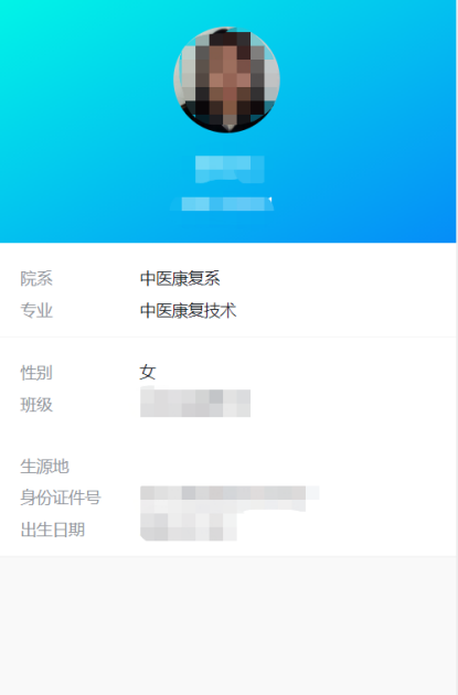 3、点击页面右上方的头像图标可以展开显示学生的基本信息情况,如下图所示:
